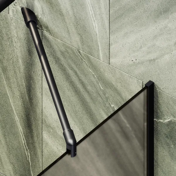 Монтаж осуществляется с помощью алюминиевого профиля, что обеспечивает надежность крепления и безопасность использования стеклянной перегородки для ванной. Также, шторка оснащена специальным уплотнителем, который предотвращает попадание воды на пол ванной комнаты. Закаленное стекло, цвет Графит, толщина 8 мм 1400х500 мм - 1 шт.