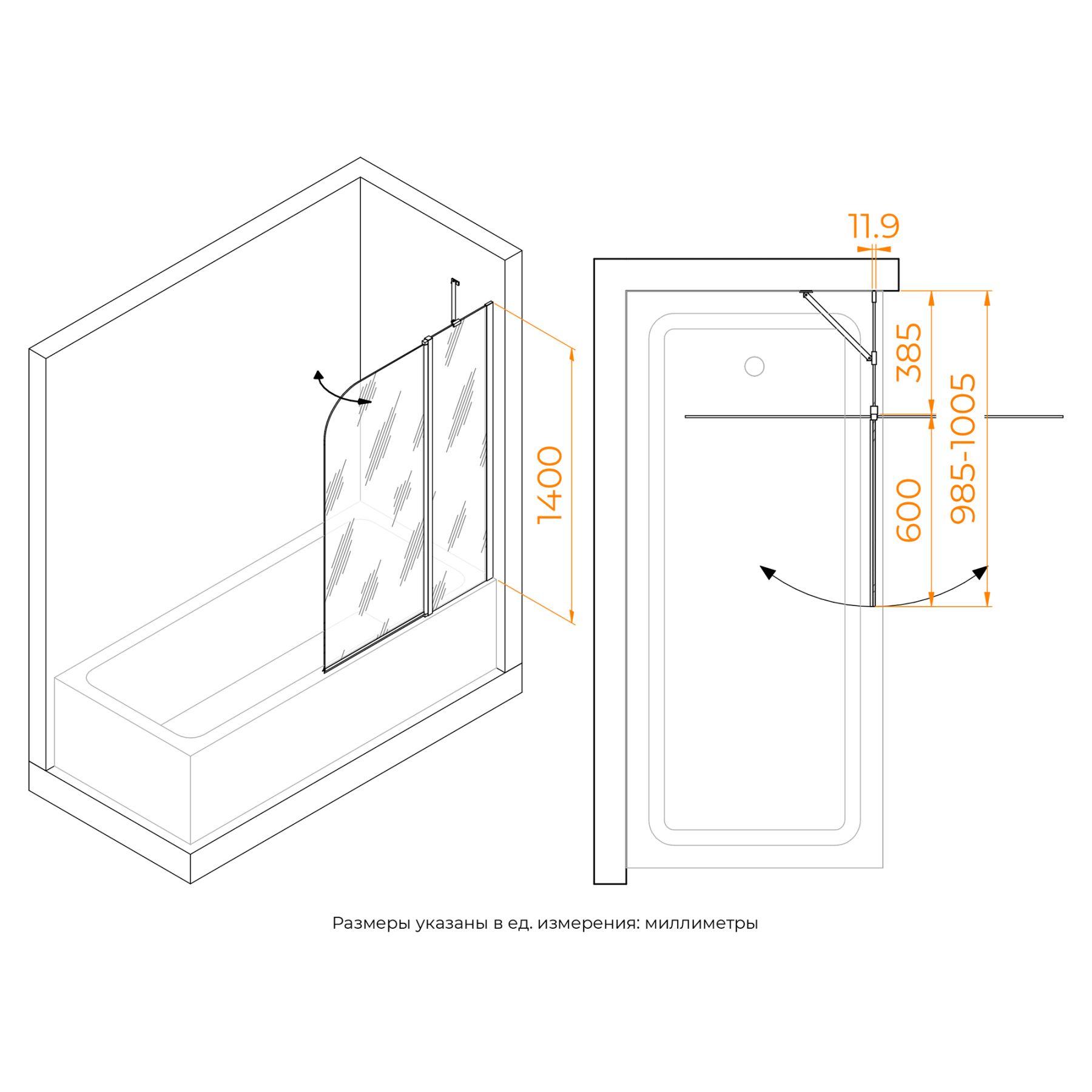 Высота шторки: 1400 мм — подходит для большинства стандартных ванн.