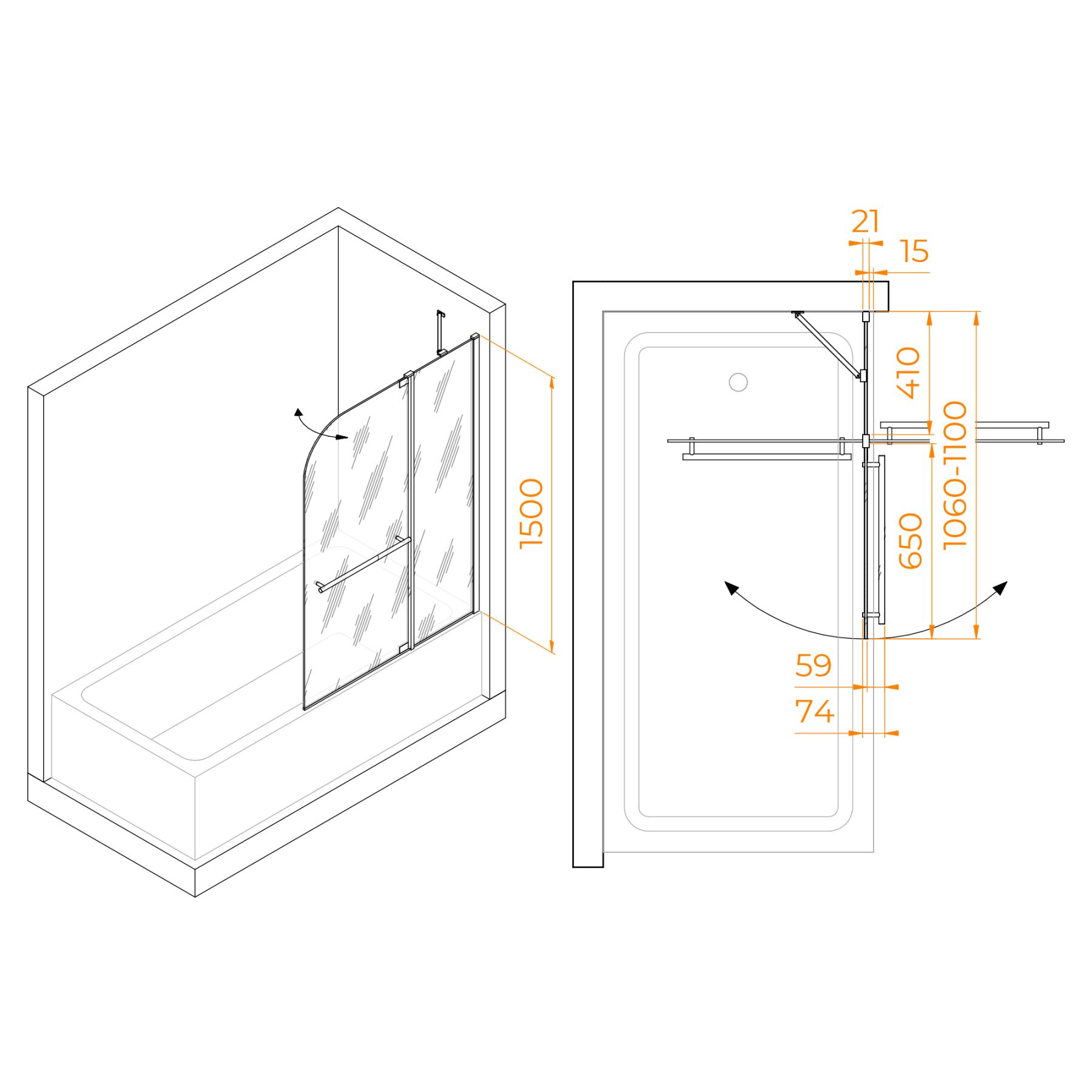 Шторка на ванну RGW SC-03 03110311-11 110см хром