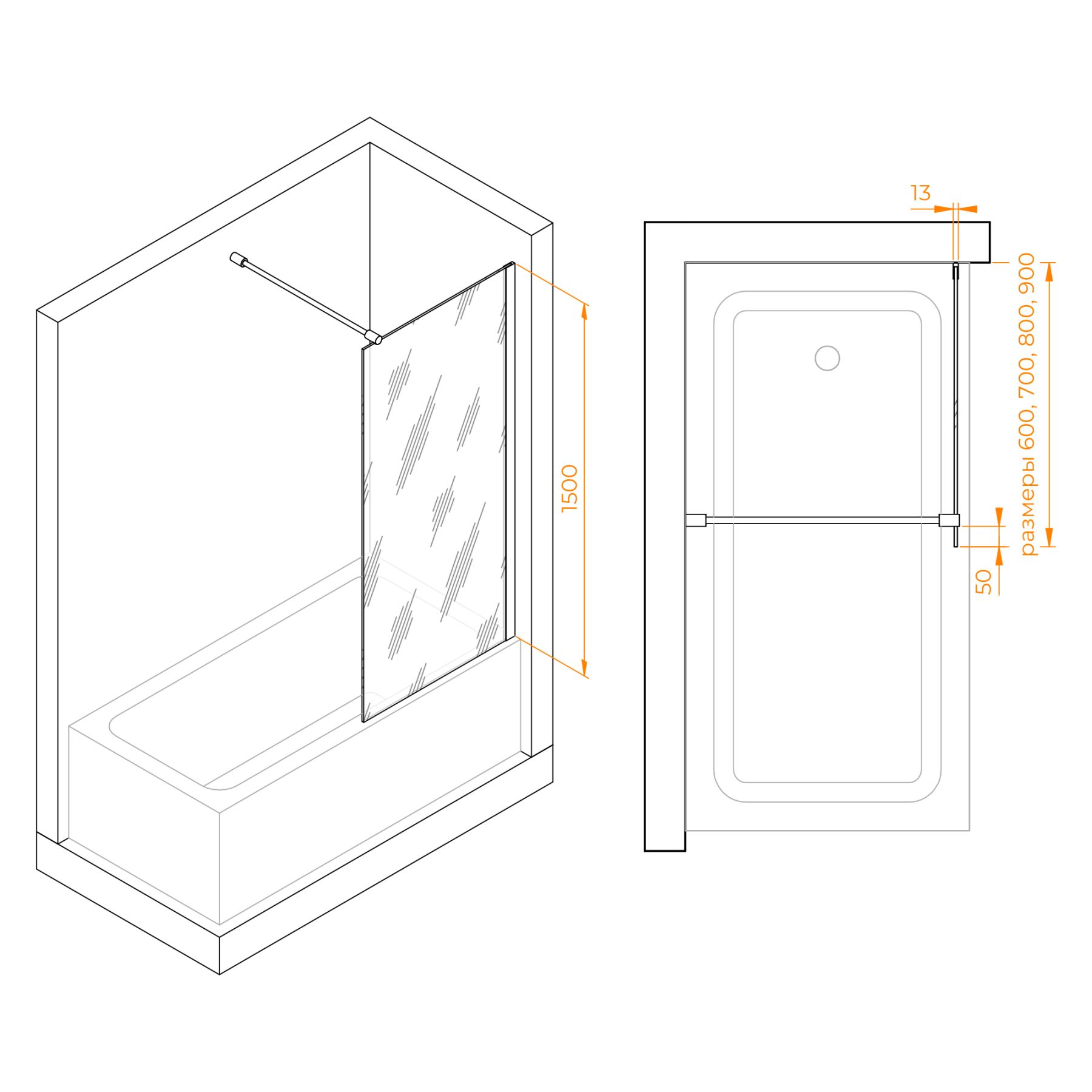 Шторка на ванну RGW SC-051B 351105109-14 90см чёрный