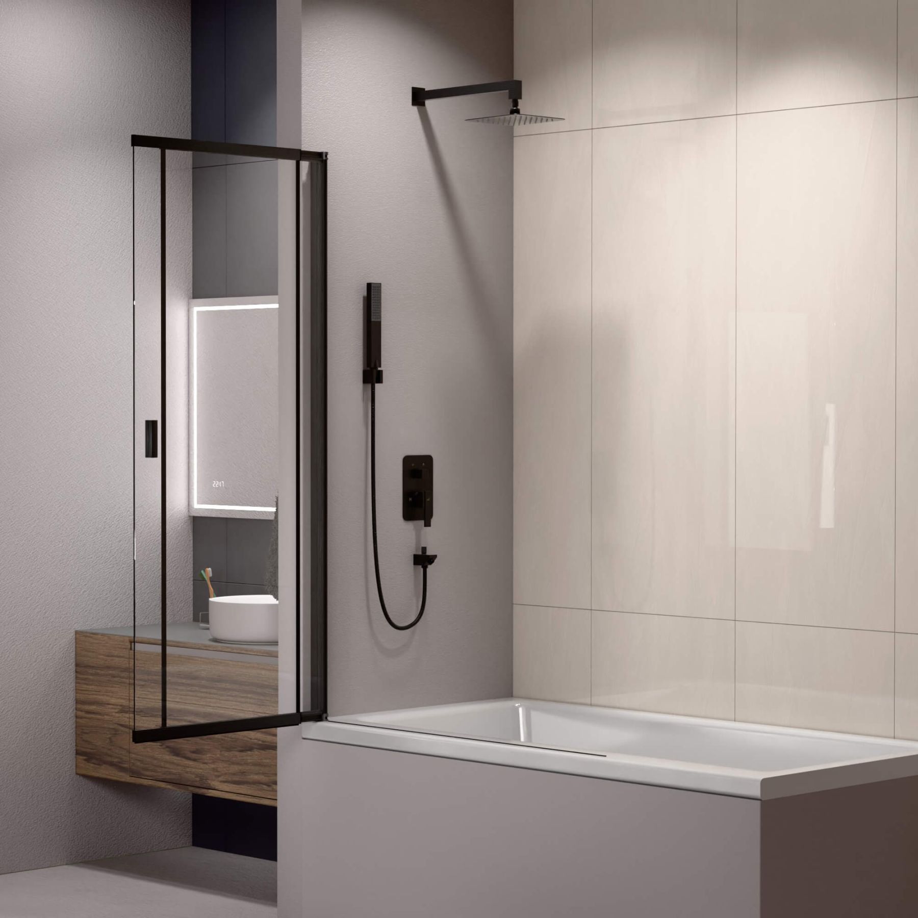 Шторка на ванну RGW SC-40B 03114010-14 100 см профиль чёрный стекло прозрачное купить