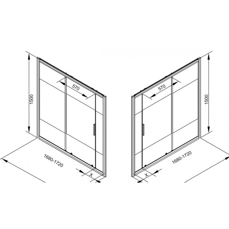 Шторка на ванну с боковым стеклом Aquanet Practic AE10-B-170H150U-CP + AE10-F-80H150U-CP 254253 170x80 см прозрачное стекло/шелкография профиль хром
