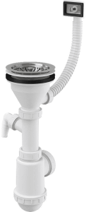 Сифон для мойки AlcaPlast с нержавеющей решеткой ?115 гофропереливом и подводкой A447P-DN50/40