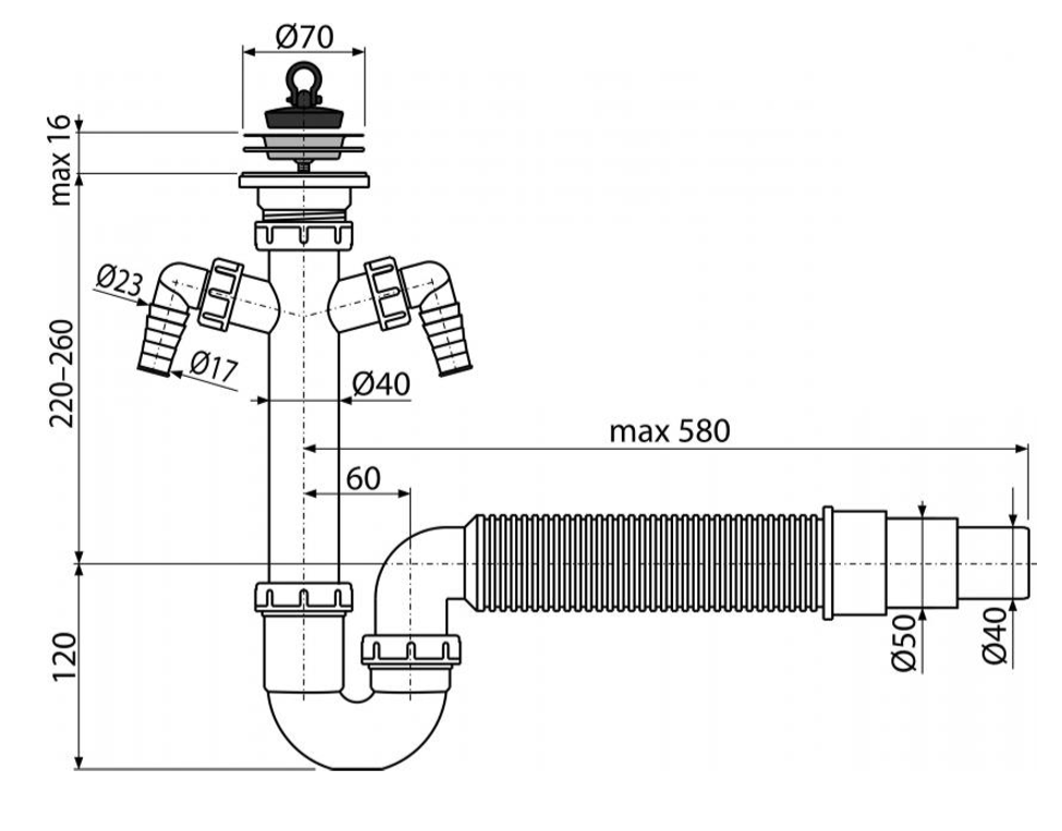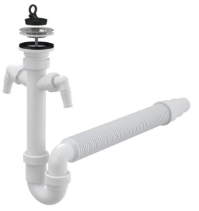Сифон для мойки AlcaPlast трубчатый с нержавеющей решеткой ?70 гофрой и двумя подводками A840-DN50/40 купить