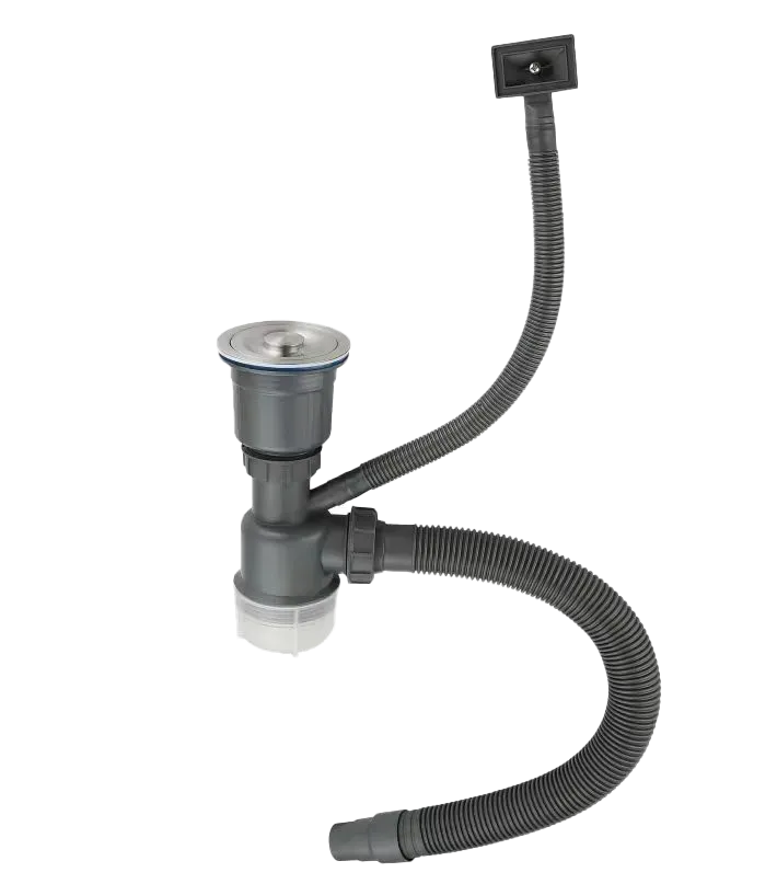 GF-01 нерж Сифон одинарный для мойки из нерж. стали, с переливом и корзинкой для мусора