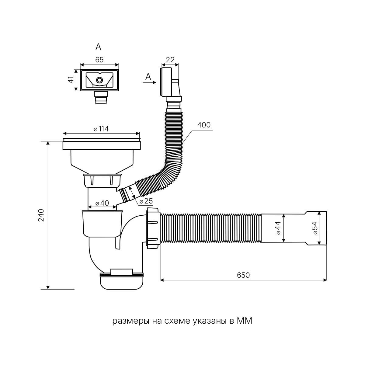 Сифон для одночашевой кухонной мойки с выпуском Reflexion Arno RX3001BL оружейная сталь
