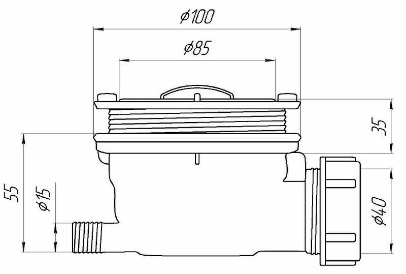 Диаметр сифона: 90 мм, обеспечивает слив до 30 л воды в минуту.
