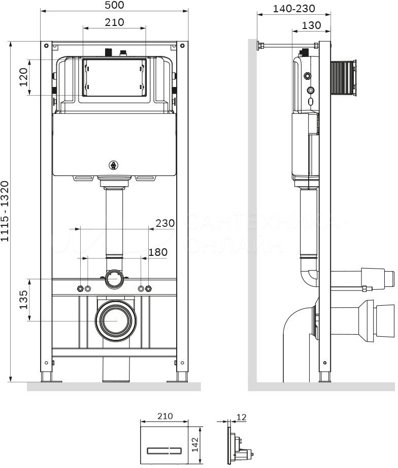 Вертикальные ребра жесткости в конструкции рамы – дополнительная опора в месте давления керамики на стену. Благодаря им инсталляция более универсальная и подходит для унитазов любых размеров, включая унитазы с небольшой контакной поверхностью. Нет необходимости докупать дополнительные аксессуары для монтажа таких унитазов;