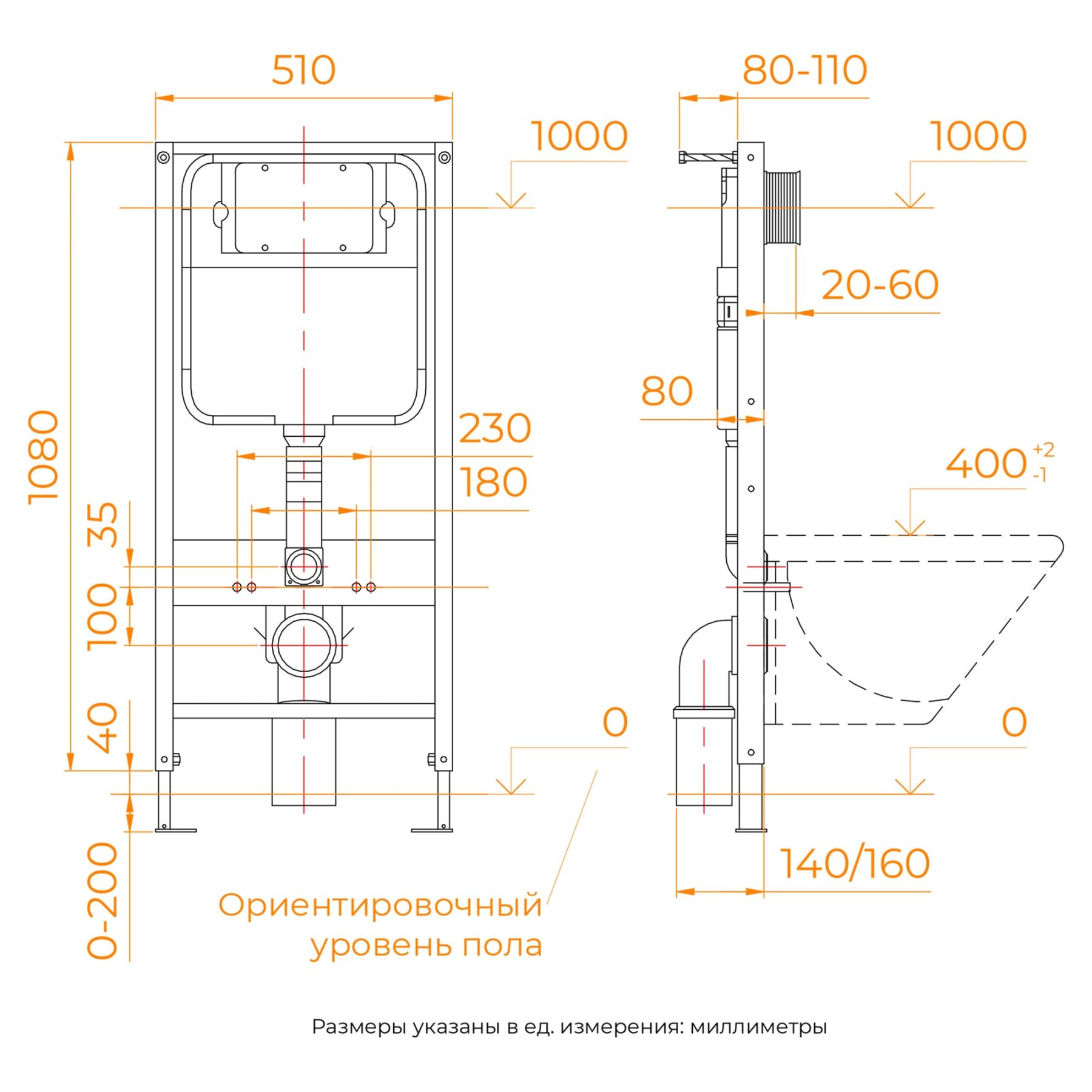 Система инсталляции RGW SWI-04 предназначена для установки подвесных унитазов. Она выполнена из стальной рамы с антикоррозийным покрытием и подходит для унитазов с межосевым расстоянием 180/230 мм.