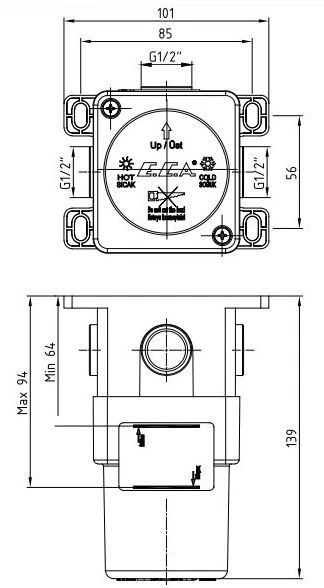 Скрытый блок E.C.A предназначен для монтажа встраиваемого смесителя. Корпус скрытого монтажа с пластиковой крышкой.Особенности: