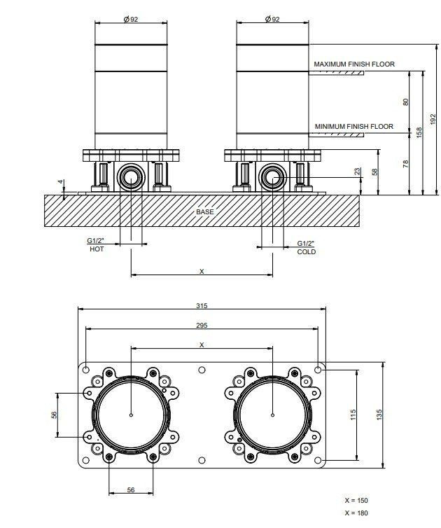 Скрытая часть напольного смесителя для ванны Gessi 65099.031