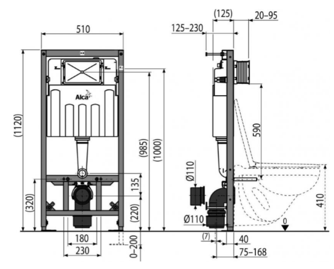 - Для установки подвесного унитаза с интервалом крепления 180 мм или 230 мм