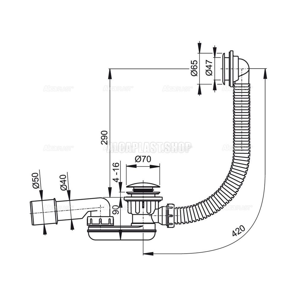 - Для душевых поддонов с переливом
