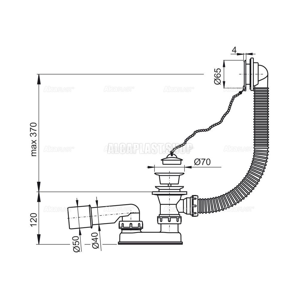 - Для ванн с выпускным отверстием Ø52 мм