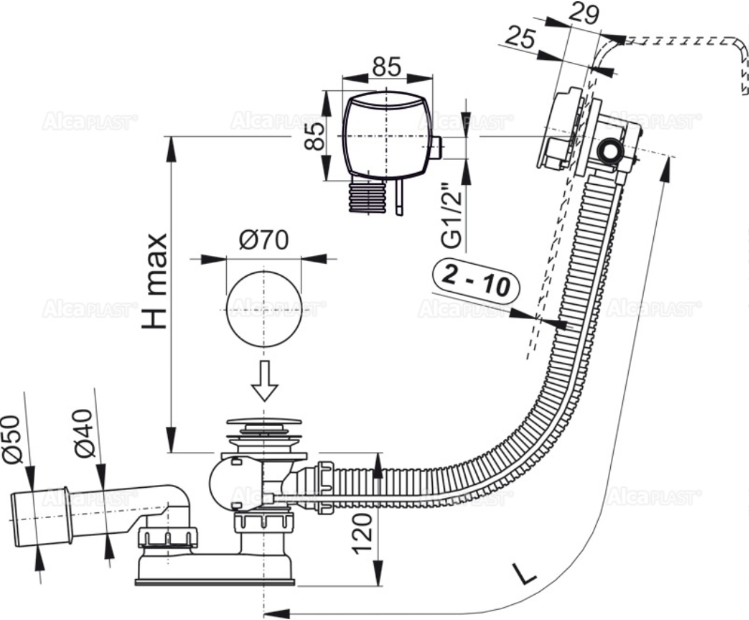 Слив-перелив для ванны AlcaPlast с напуском воды через перелив 100см пластик-металл хром A564CRM1-100 купить