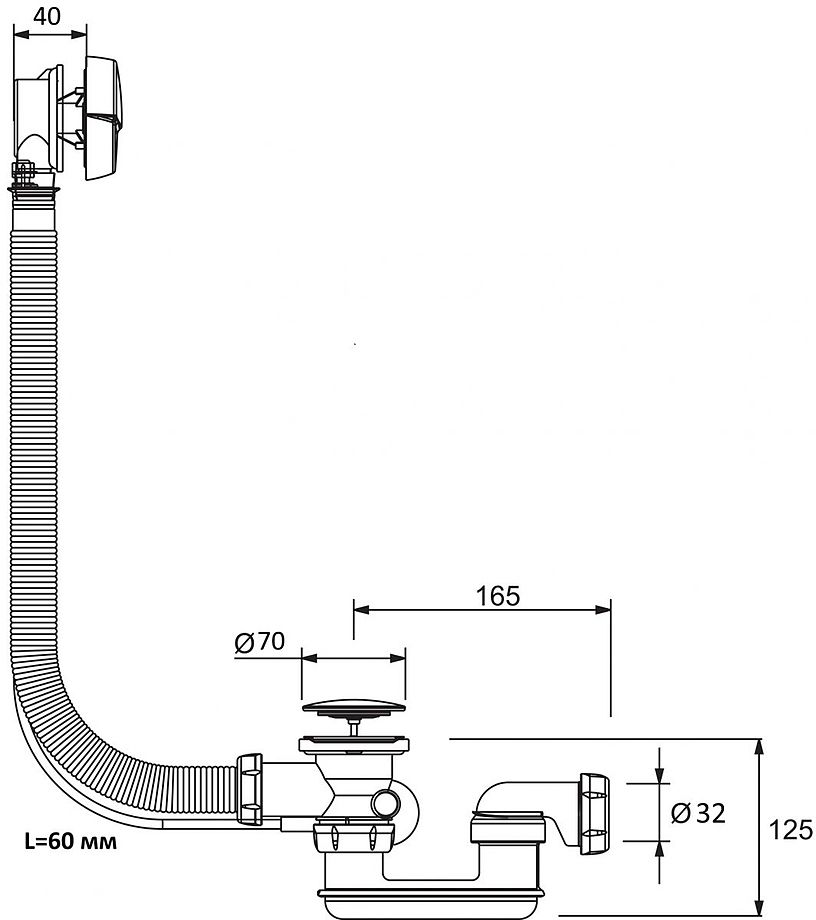 Слив-перелив для ванны Royal Bath 60см Cliv-pereliv p/a 60 cm