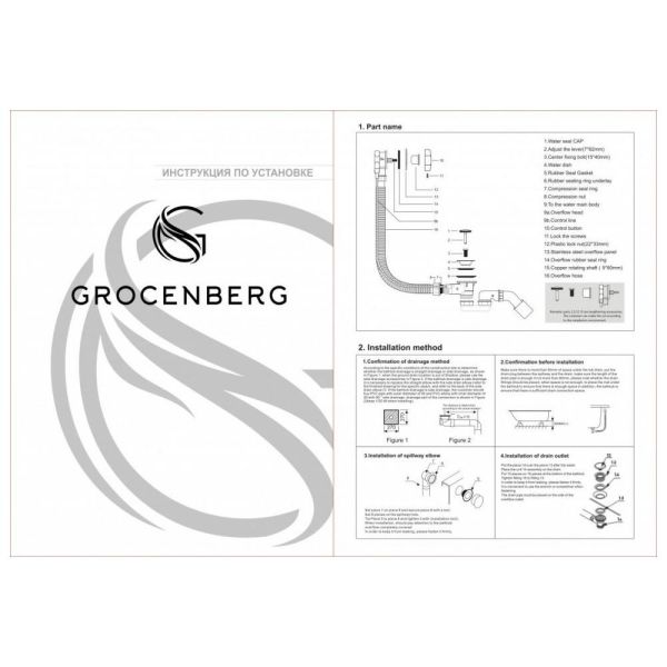 Слив-перелив (полуавтомат) Grocenberg GB240MG, матовое золото купить