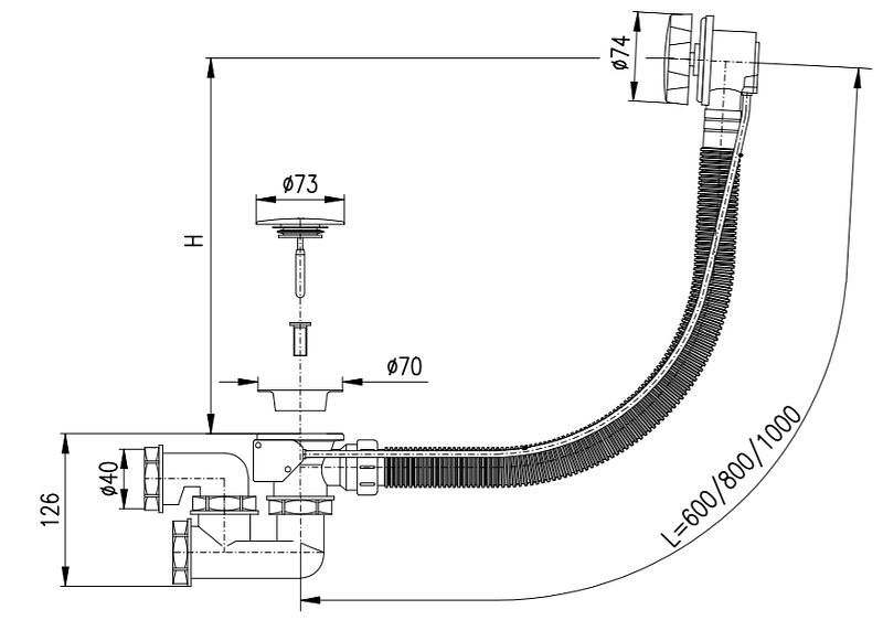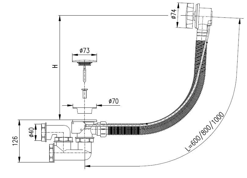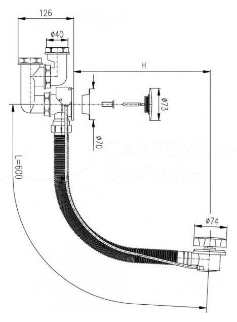 В комплекте поставки: слив-перелив.