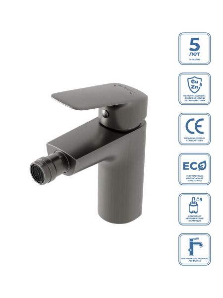 Смеситель BelBagno для биде без донного клапана, оружейная сталь DUE-BD-GM-W0