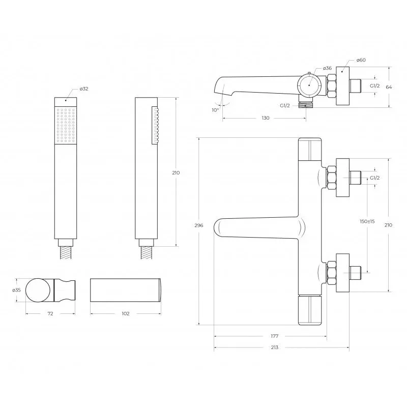 Смеситель BelBagno для ванны и душа в комплекте с ручным душем, шлангом и держателем, хром UNO-VASM/DFS-CRM
