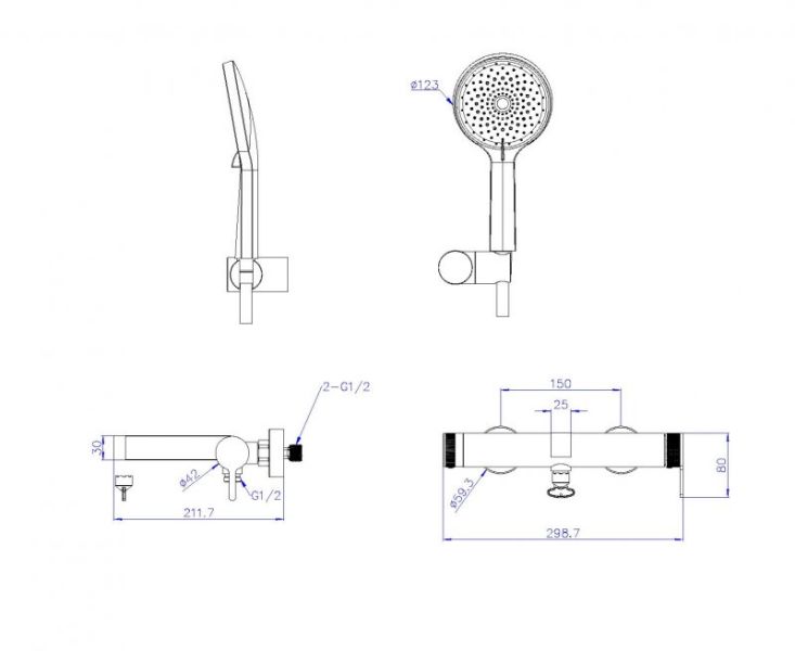 Ручной душ удобен для разных задач — от быстрого душа до ухода за ванной. Шланг гибкий, не перекручивается и не заламывается, а держатель позволяет зафиксировать лейку в комфортном положении.
