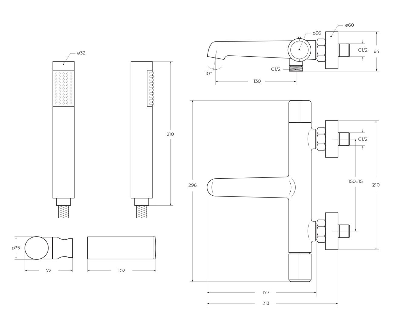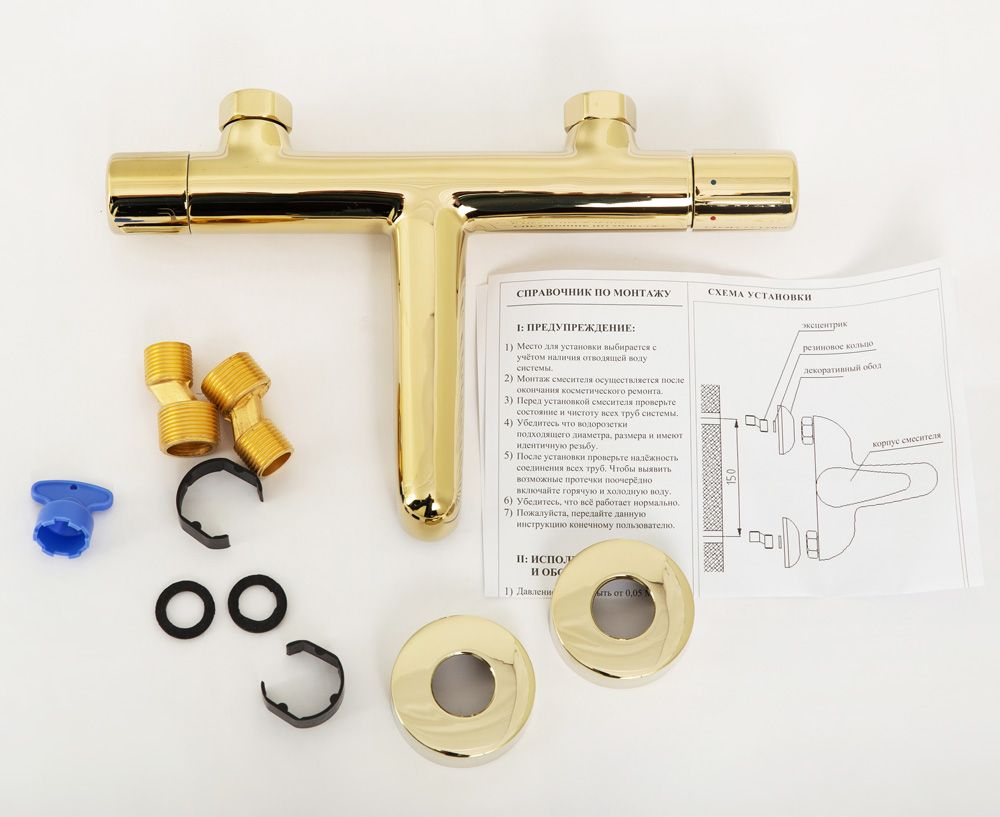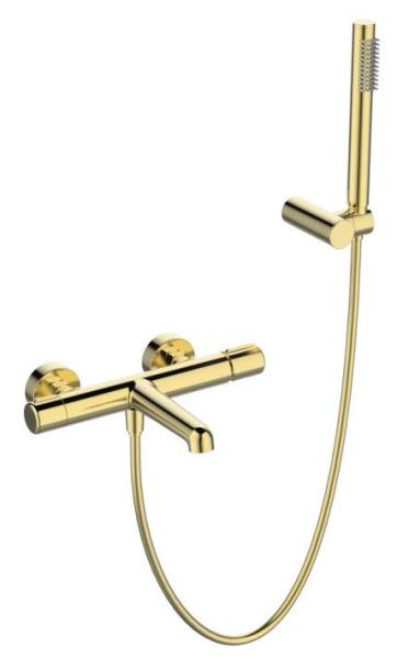 Смеситель BelBagno для ванны и душа в комплекте с ручным душем, шлангом и держателем, золото UNO-VASM/DFS-ORO