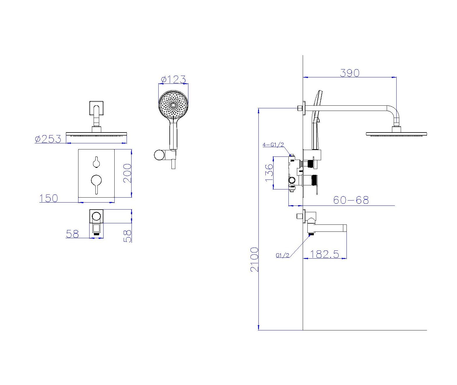 Смеситель BelBagno встраив.,верхний душ, ручной душ со шлангом и держателем), оружейная сталь DEL2.0-VDSET-GM купить