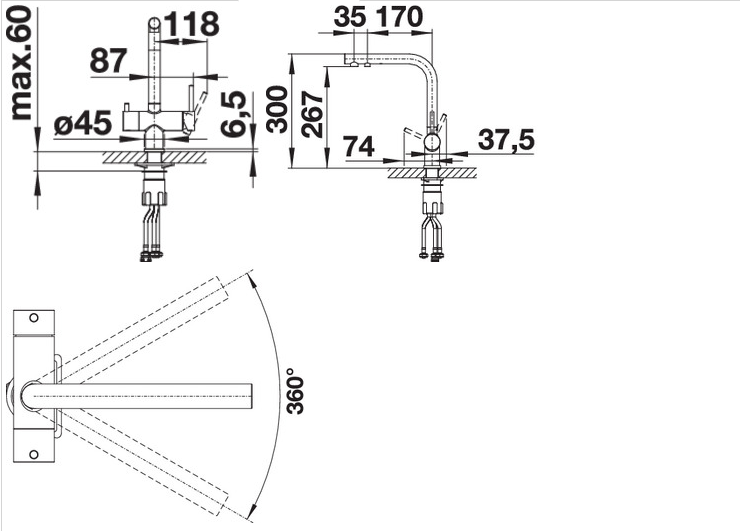 - Высокий излив с двойной функциональностью - не надо делать дополнительное отверстие
