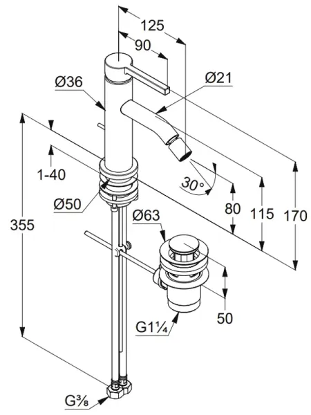 Смеситель для биде Kludi Nova Fonte Pura 20216N215 сталь оружейная брашированная