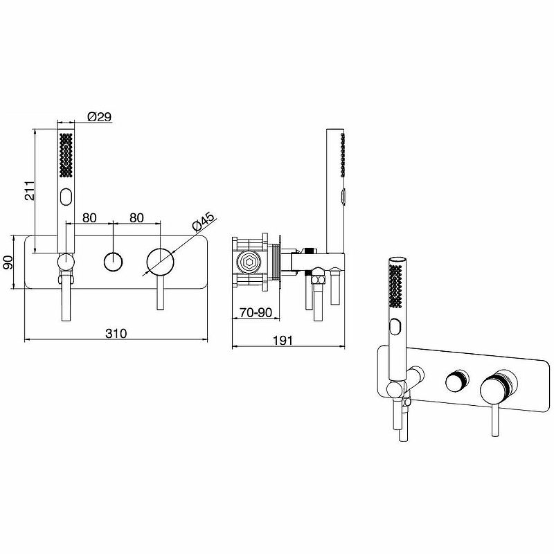 Габариты ручного душа (ШхВхД): 29х211х29 мм.