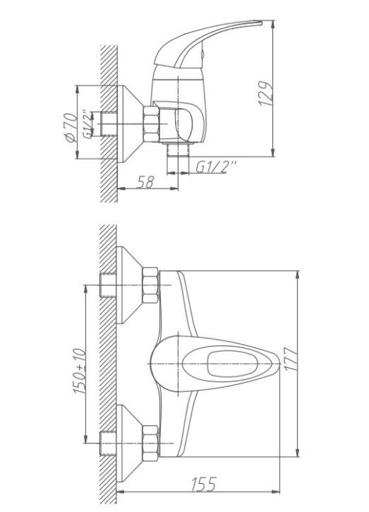 Смеситель изготовлен из латуни.Диаметр декоративных чашек 70 мм.Душевой гарнитур в комплекте.Межосевое расстояние (расстояние между выходом горячей и холодной трубы) 150 мм.Данное расстояние изменяется за счет входящих в комплект эксцентриков на 10 мм. в большую или меньшую стороны.Цвет хром.