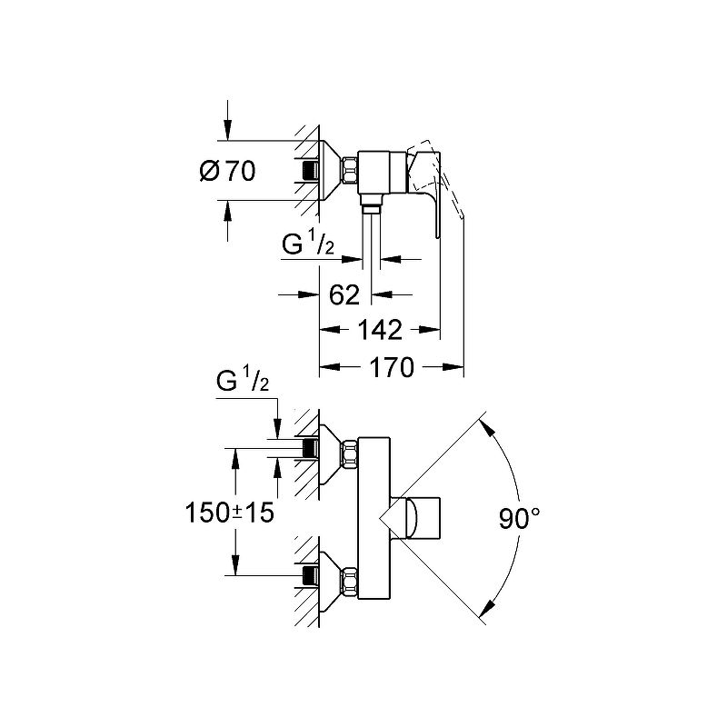 Смеситель для душа Vigour by GROHE, хром 75143026