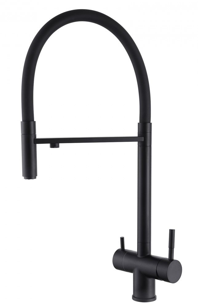 Смеситель для кухни ABBER Wasser Kreis AF81141B с подключением фильтра и выдвижной лейкой чёрный матовый купить