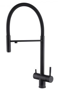 Смеситель для кухни ABBER Wasser Kreis AF81141B с подключением фильтра и выдвижной лейкой чёрный матовый