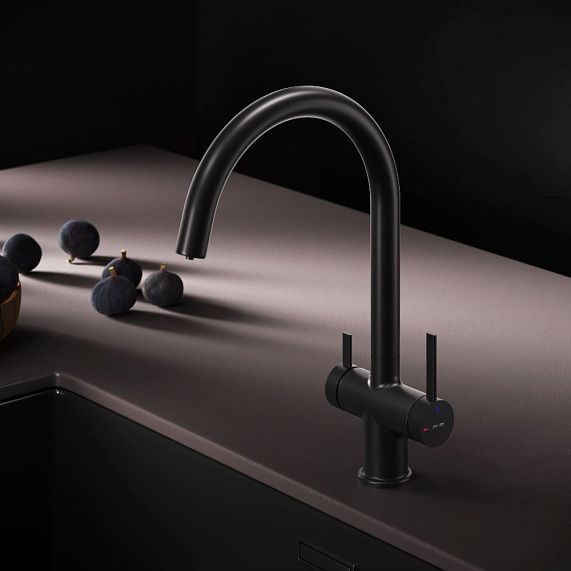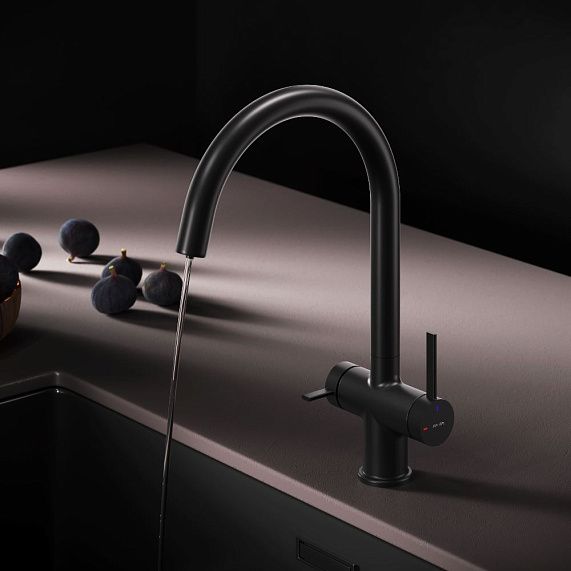 Встречайте долгожданное пополнение нашумевшей коллекции Func — кухонные смесители с оригинальными «фишками», характерными для всей коллекции. Дизайн, характерный только для премиум-сегмента, благодаря собственным дизайнерам бренда теперь представлен и в более доступной ценовой категории. Смеситель оснащён встроенным каналом для подачи питьевой воды. Чтобы получить питьевую воду, воспользуйтесь ручкой, расположенной с левой стороны корпуса; для обычной воды управляйте смесителем привычным образом. Размер (Ш/Г/В): 135x263x380 мм. Материал - нержавеющая сталь, цинк, латунь. Цвет - черный. Тип управления - однозахватный. Излив - поворотный.