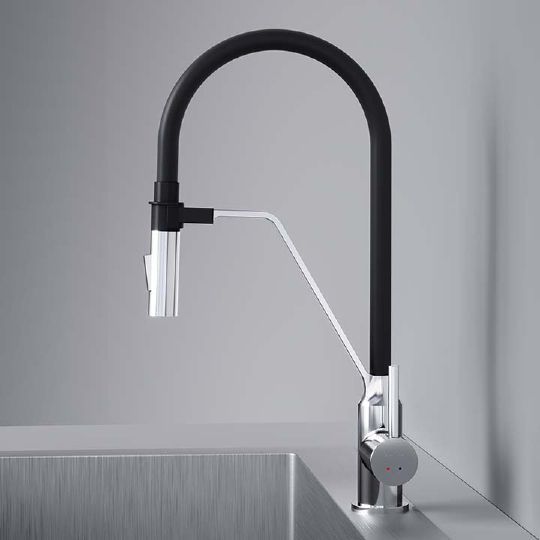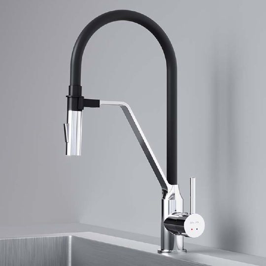 Смеситель для кухни Am.Pm Tender F45A13000 с гибким изливом хром/чёрный