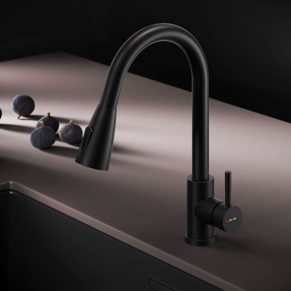 Смеситель оборудован вытяжным гибким изливом, который позволит с легкостью справится с такими задачами, как мытье раковины, наполнение больших емкостей и мытье овощей и фруктов. В зависимости от задачи вы можете легко переключаться между обычным потоком воды и режимом «душ».