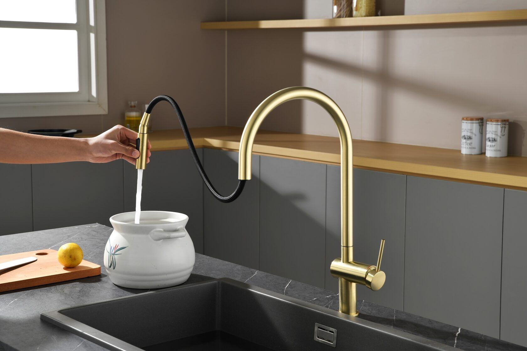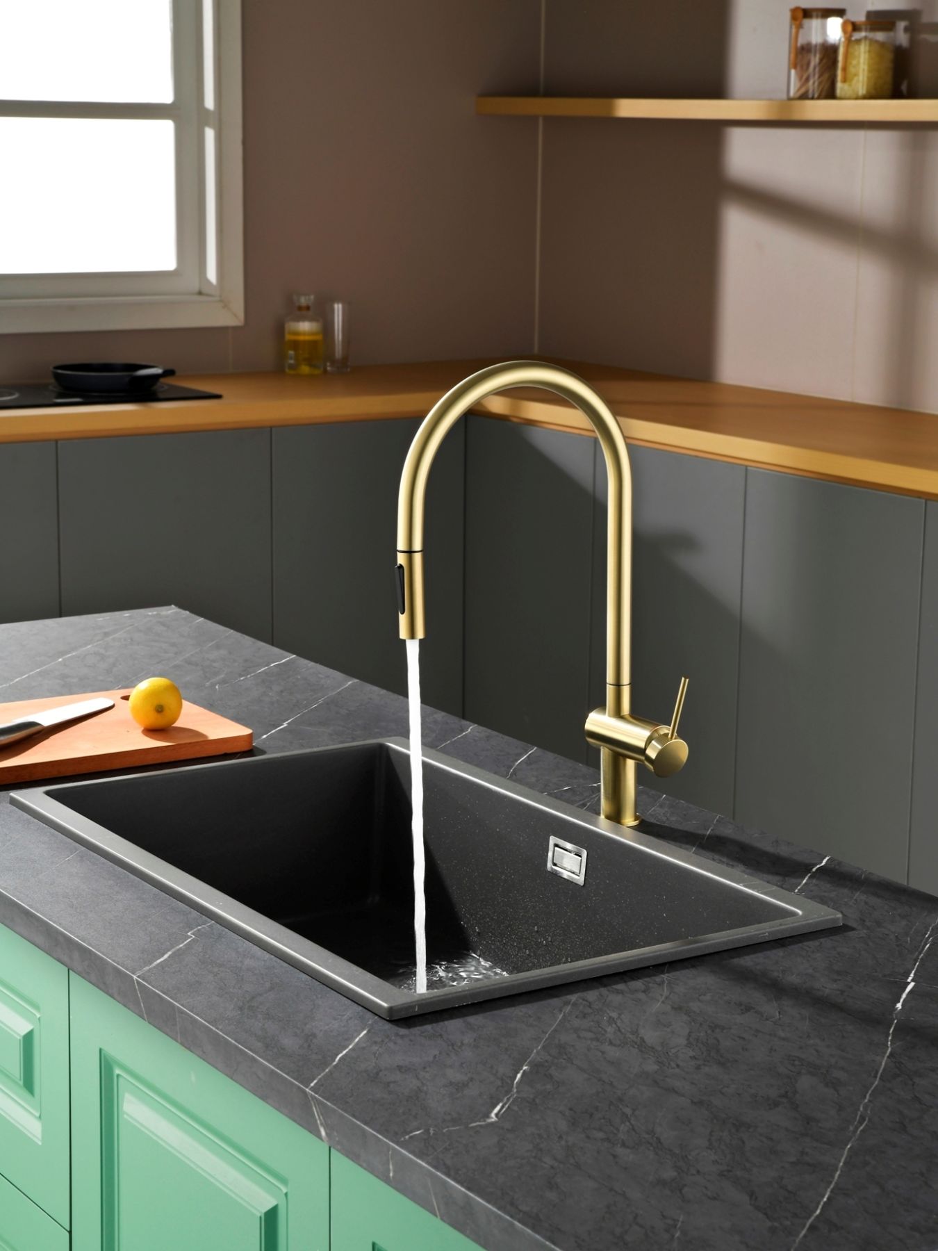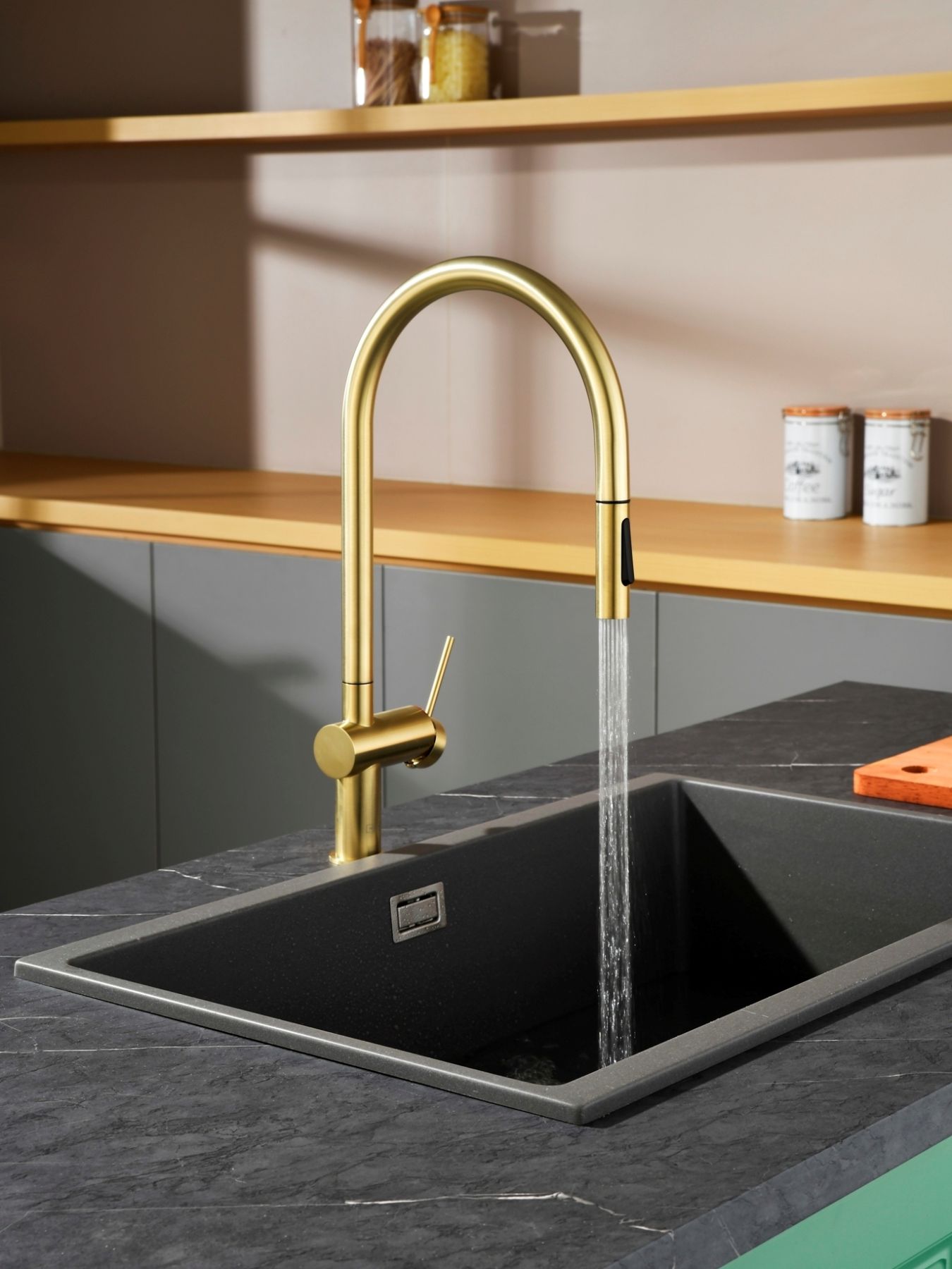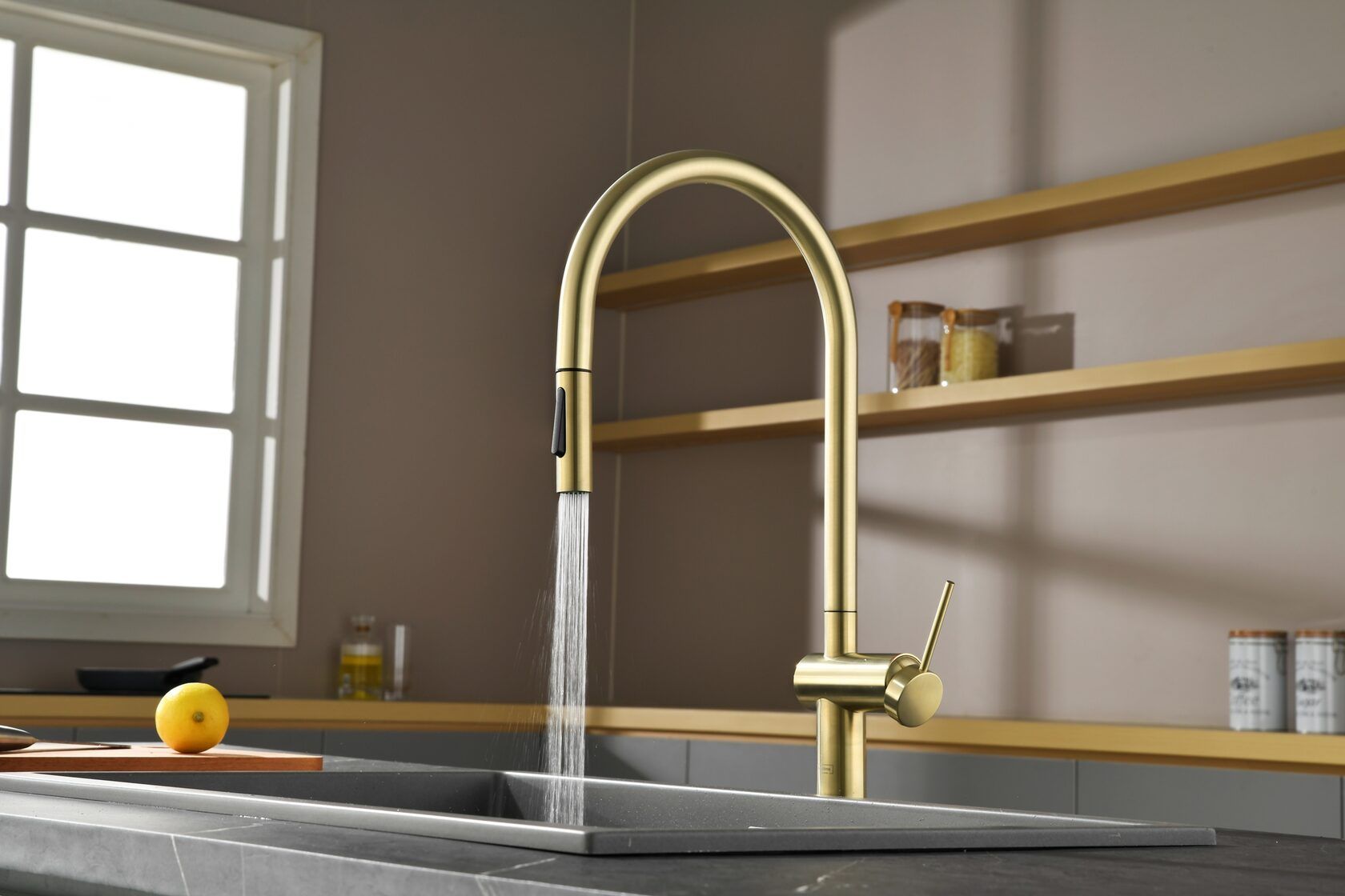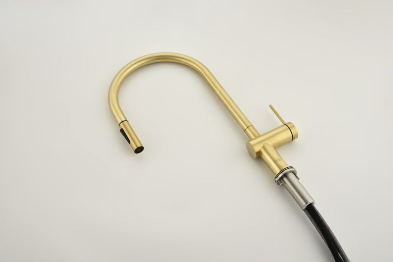 Смеситель для кухни AQUAme Cucina AQM9901BG с выдвижным изливом золото брашированное
