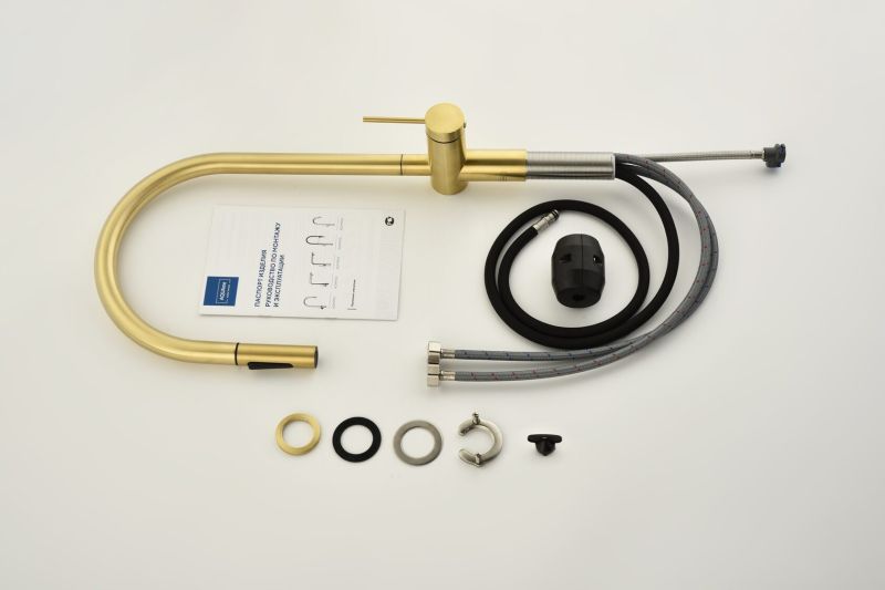Смеситель для кухни AQUAme Cucina AQM9901BG с выдвижным изливом золото брашированное купить