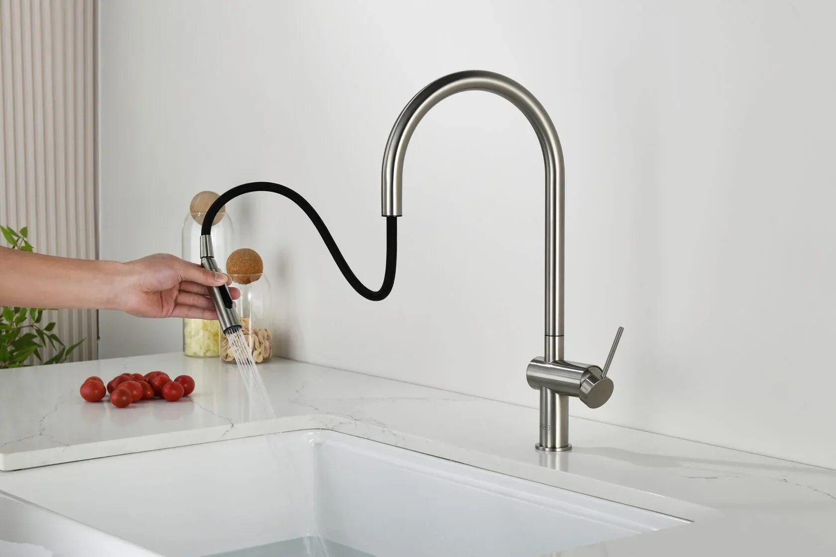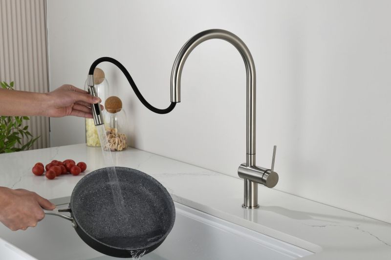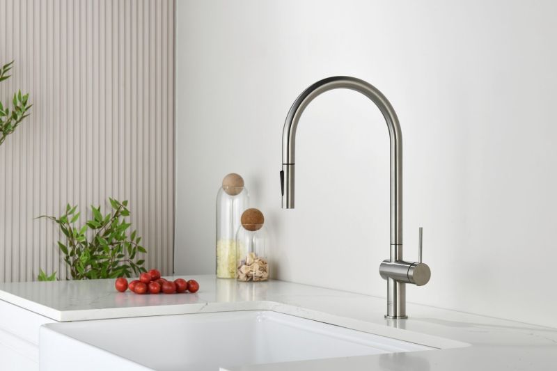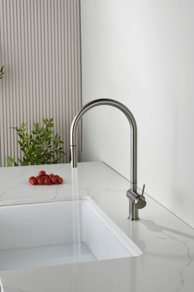 Смеситель для кухни AQUAme Cucina AQM9901BN с выдвижным изливом никель брашированный