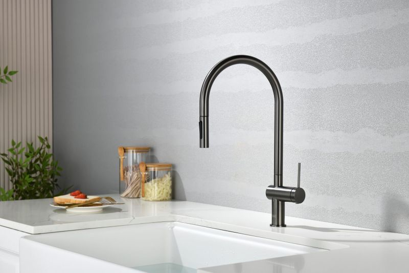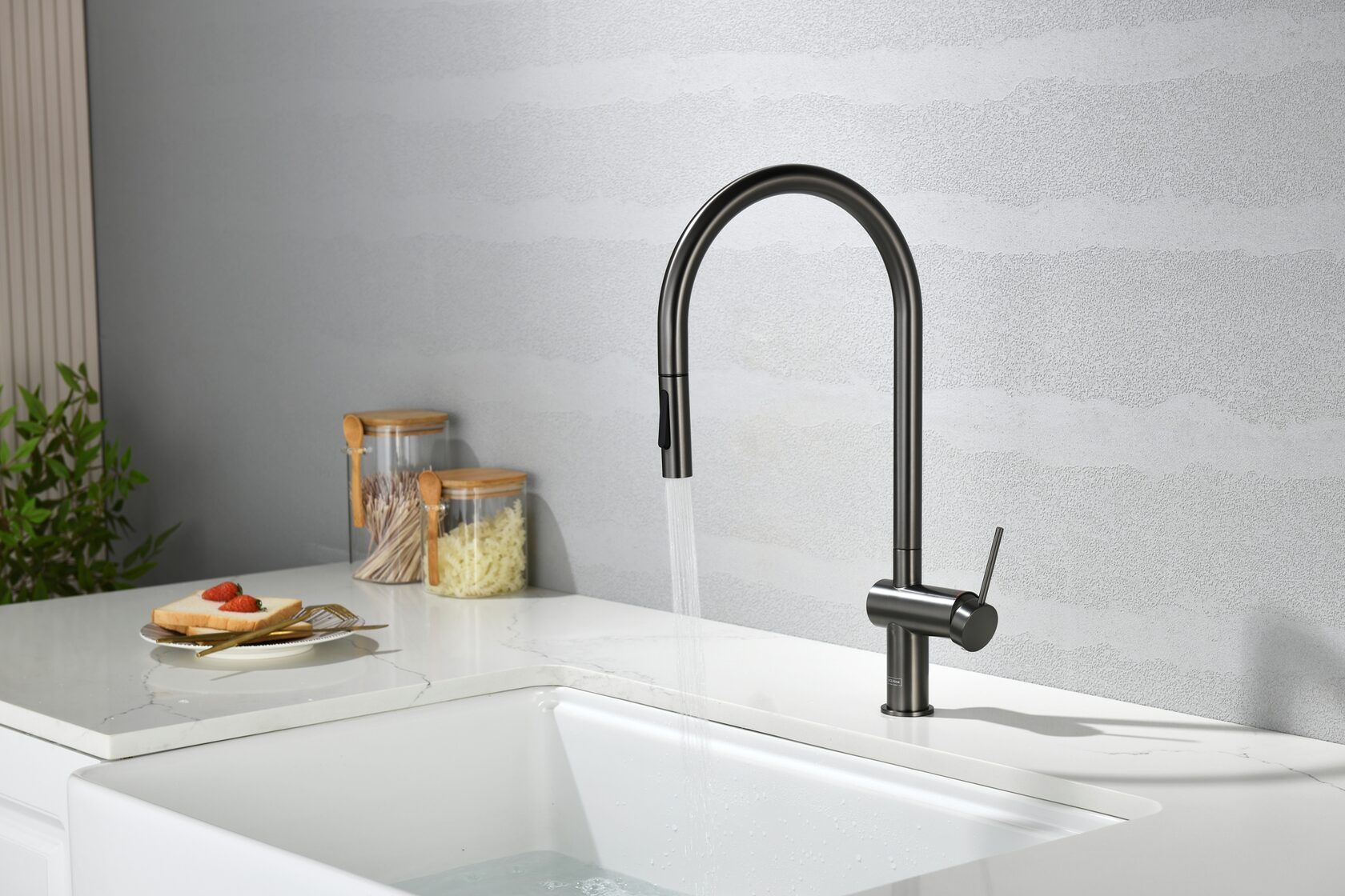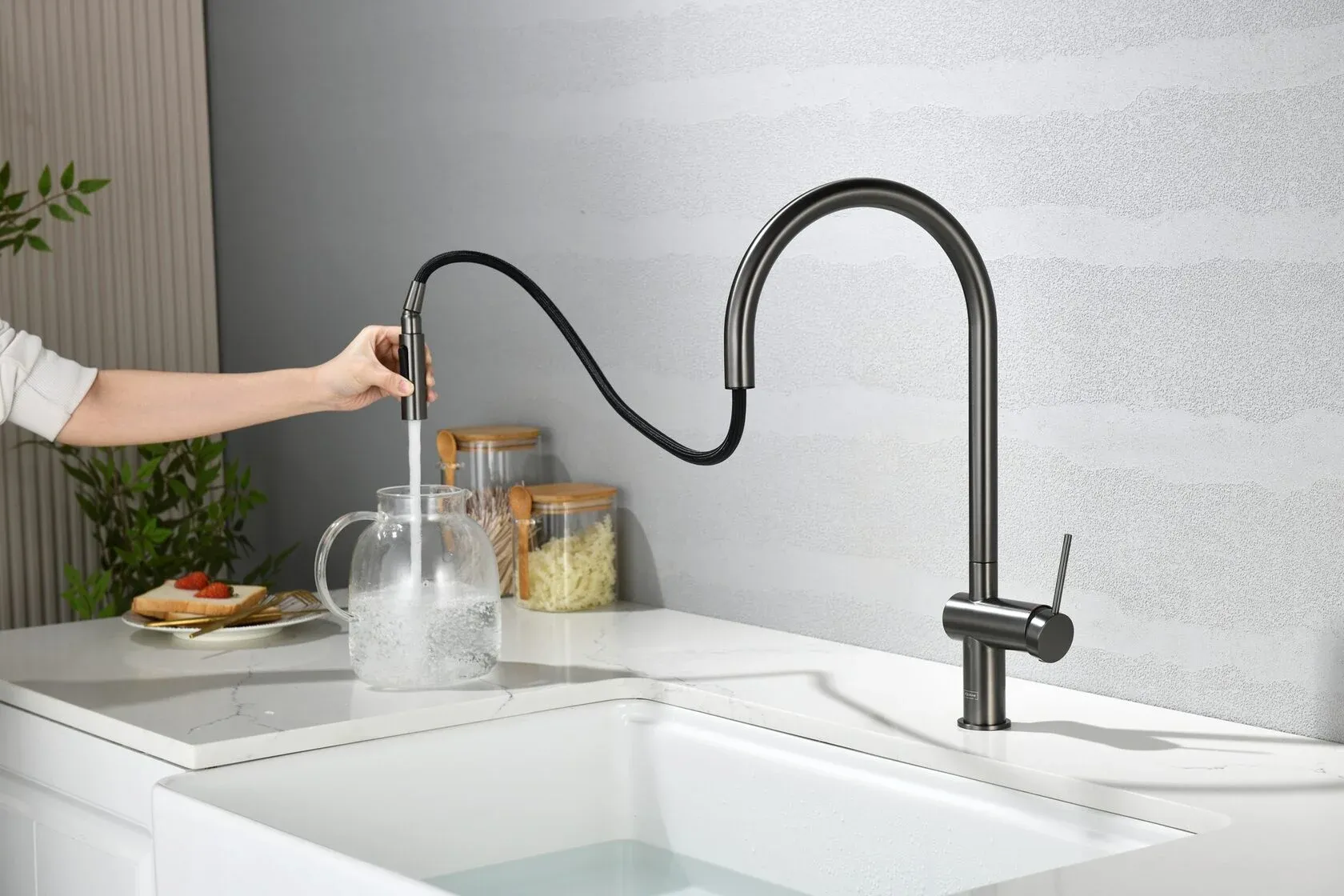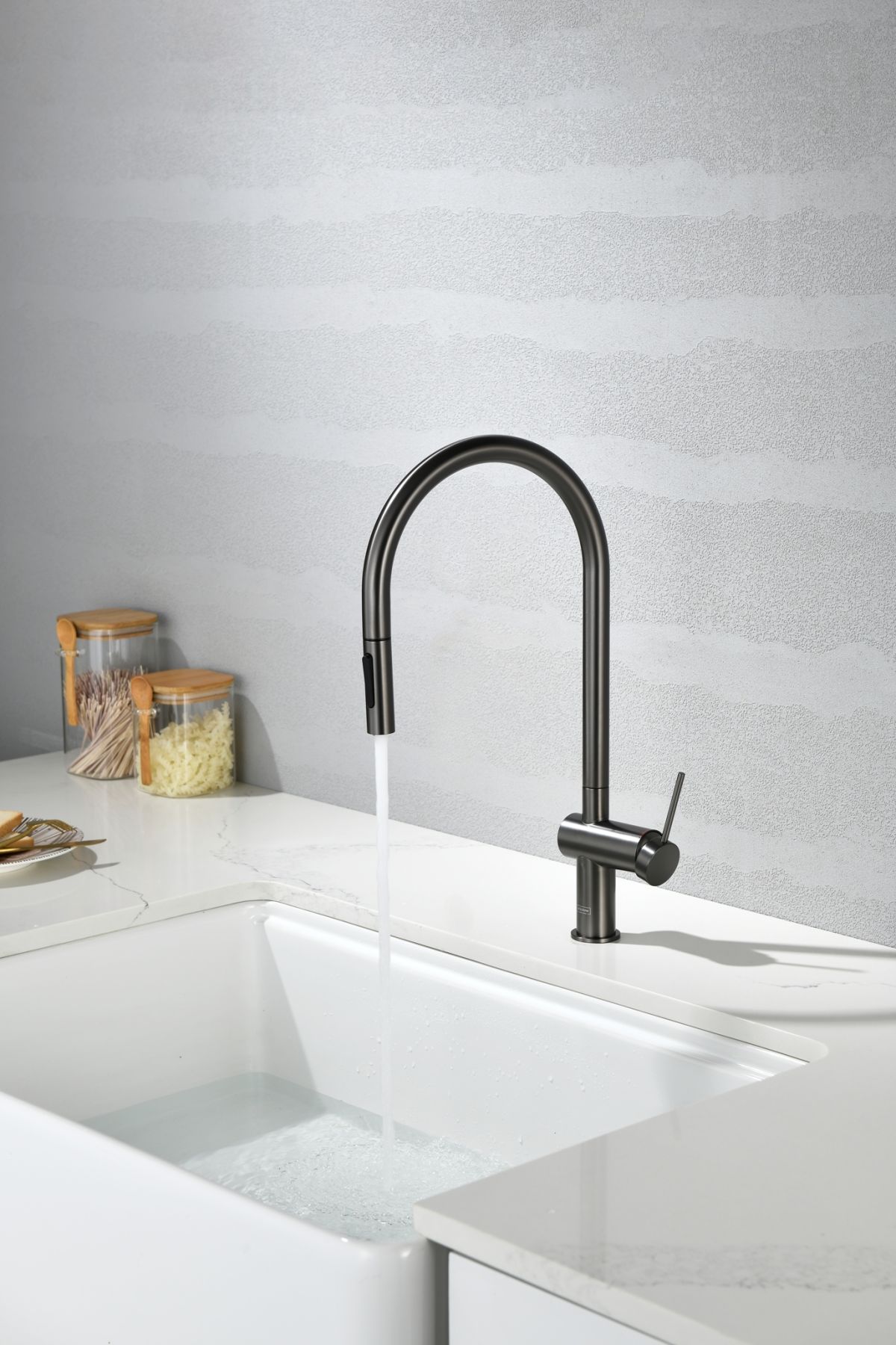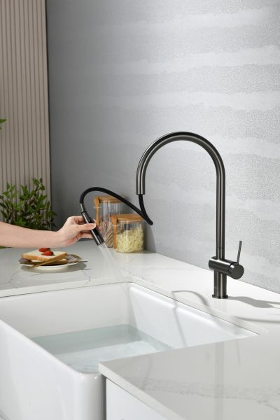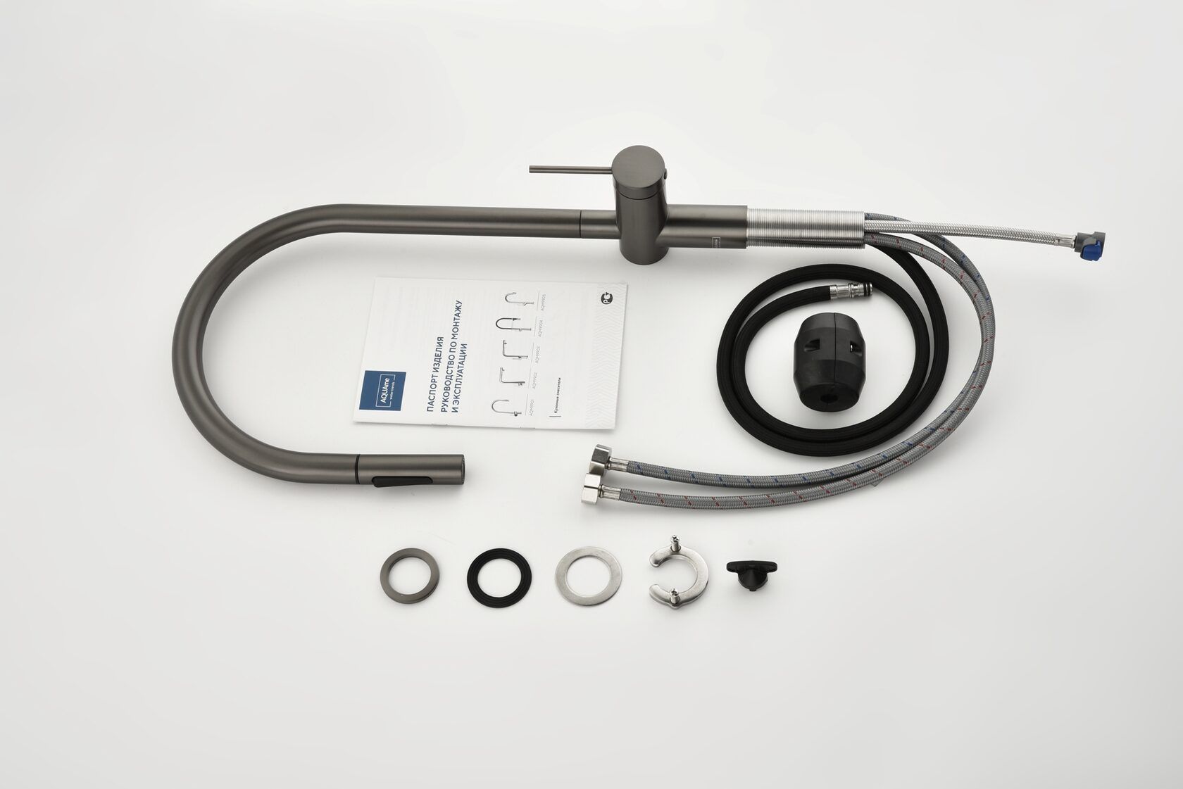 Смеситель для кухни AQUAme Cucina AQM9901GM с выдвижным изливом графит матовый