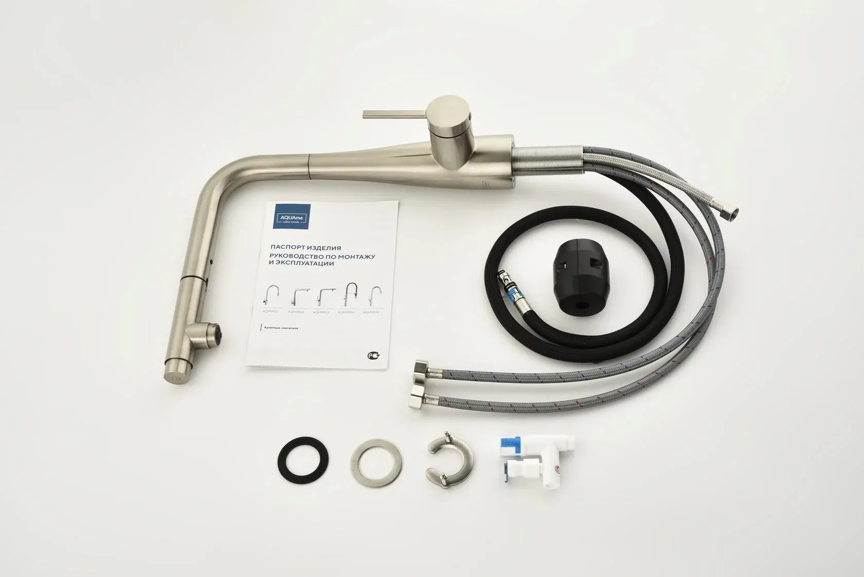 Смеситель для кухни AQUAme Cucina AQM9902BN с выдвижным изливом никель брашированный купить