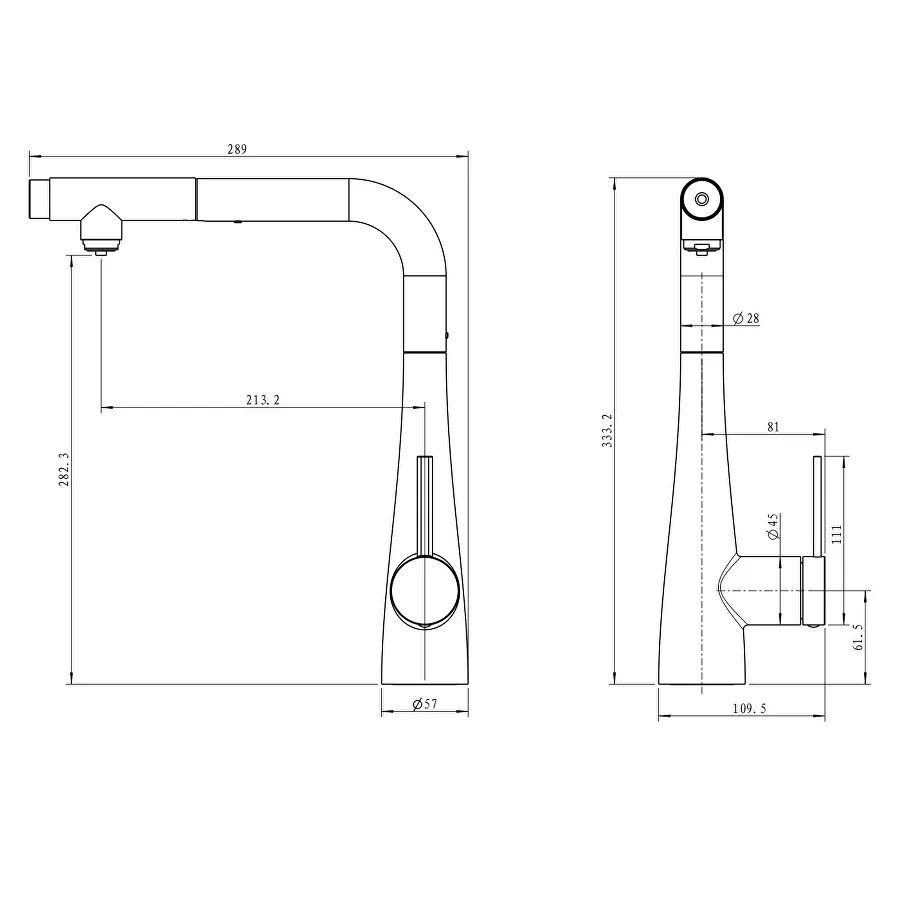 - Высота смесителя:33.3