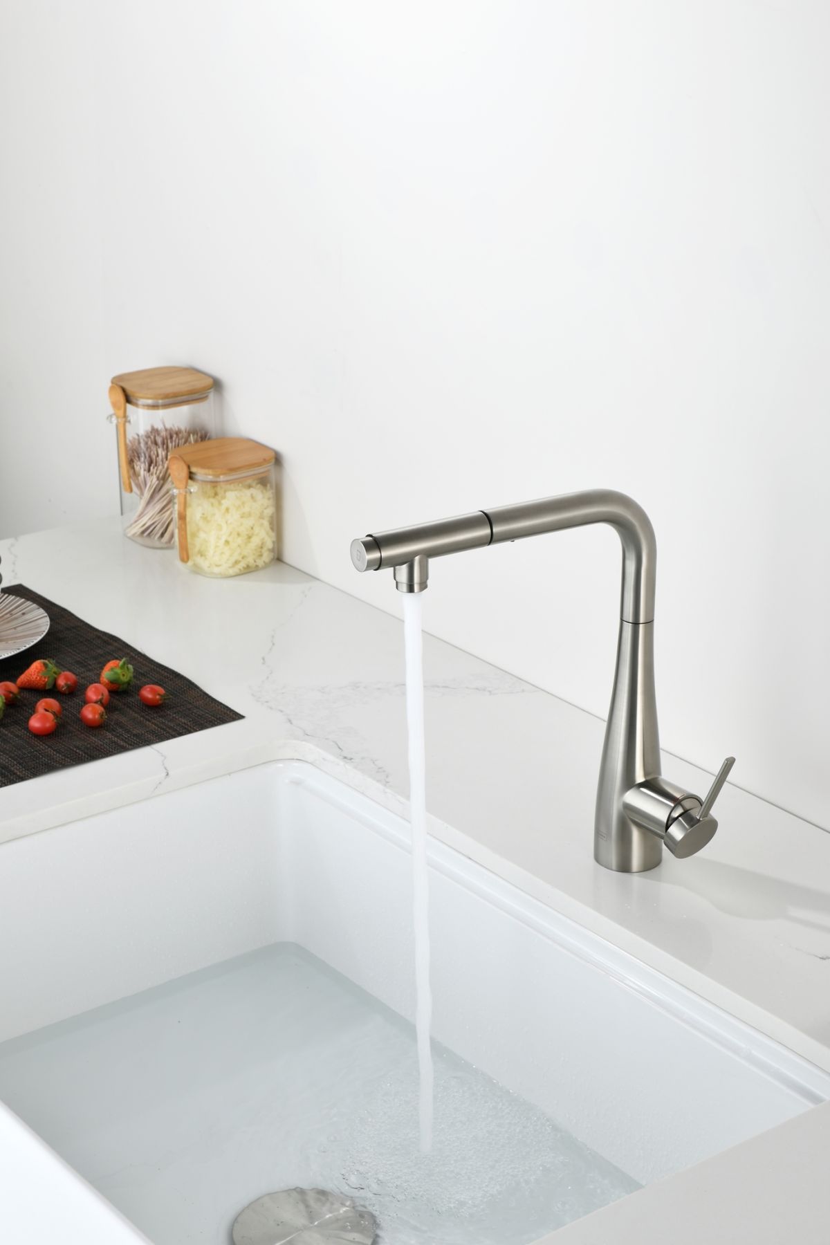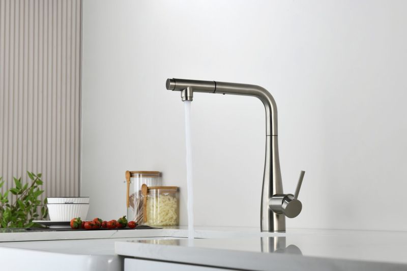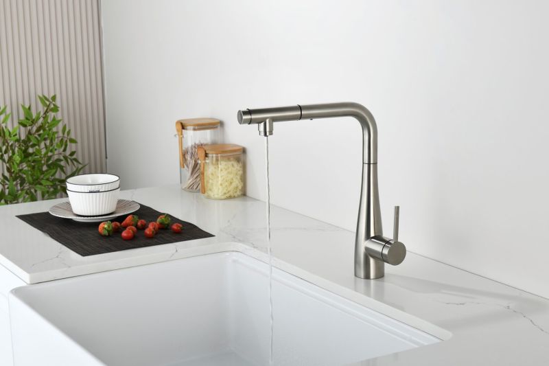 Смеситель для кухни AQUAme Cucina AQM9902BN с выдвижным изливом никель брашированный