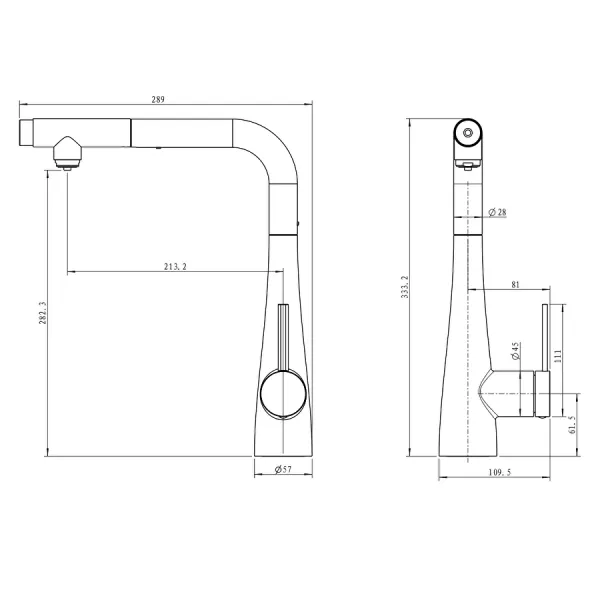 - Высота смесителя:33.3