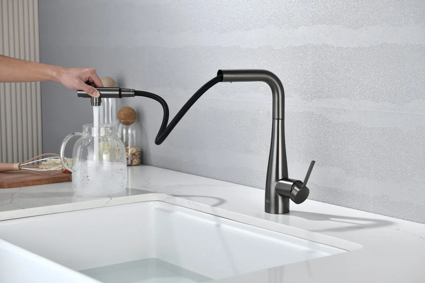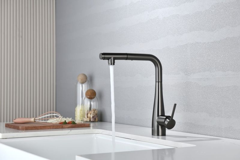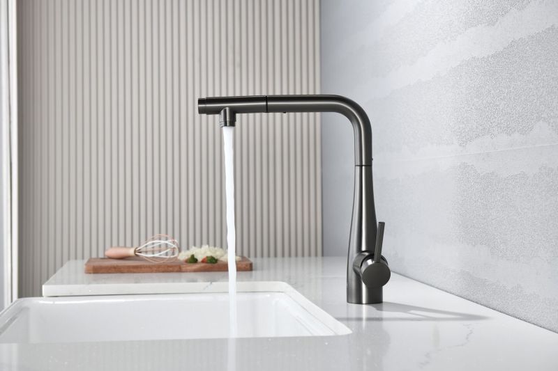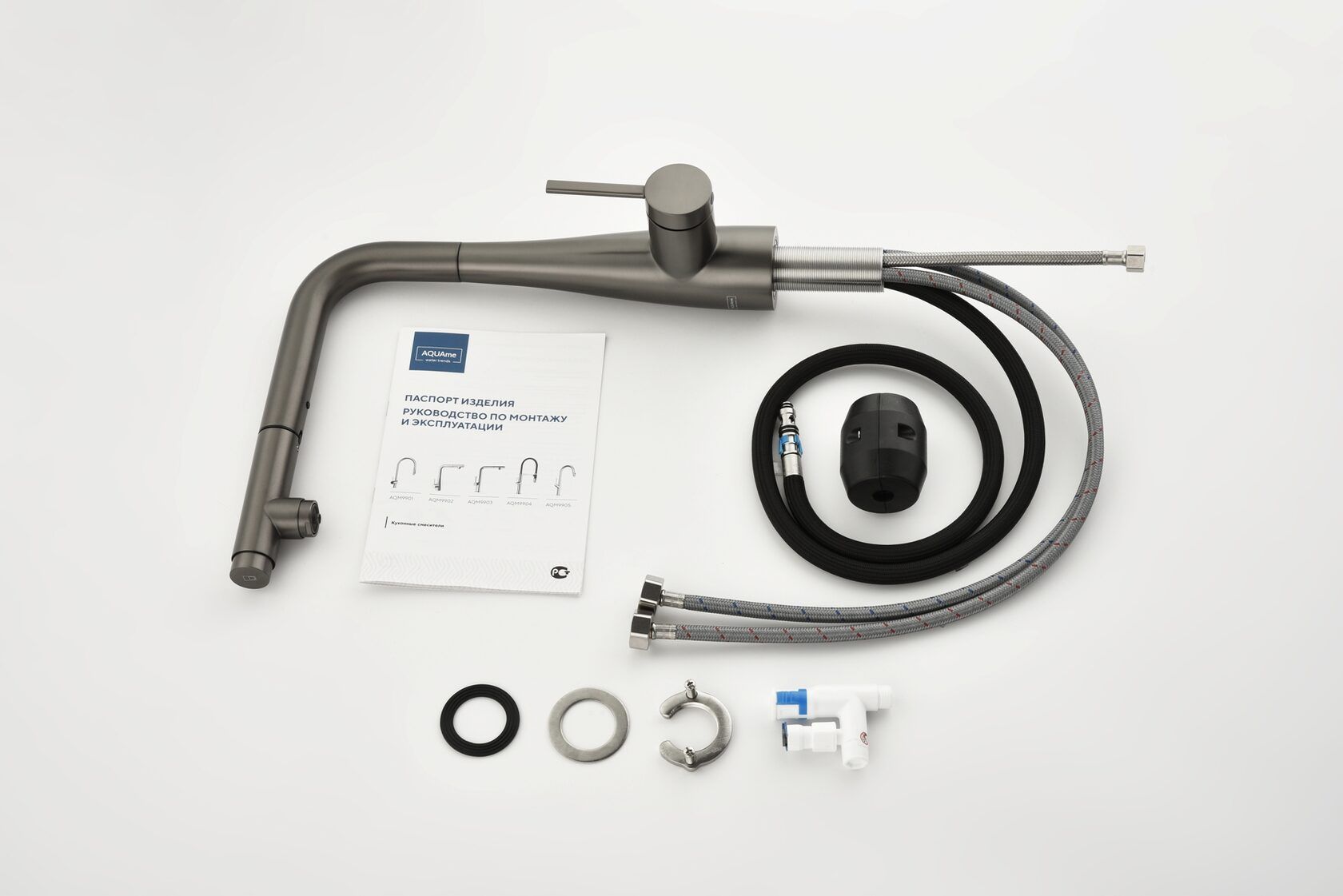 Смеситель для кухни AQUAme Cucina AQM9902GM с выдвижным изливом графит матовый