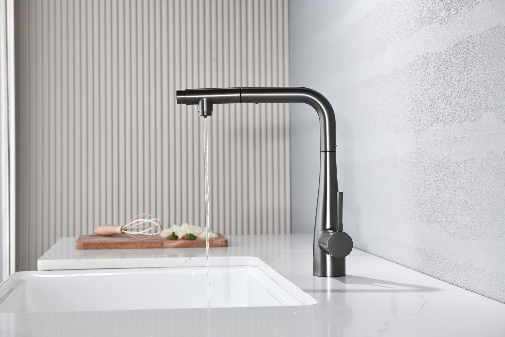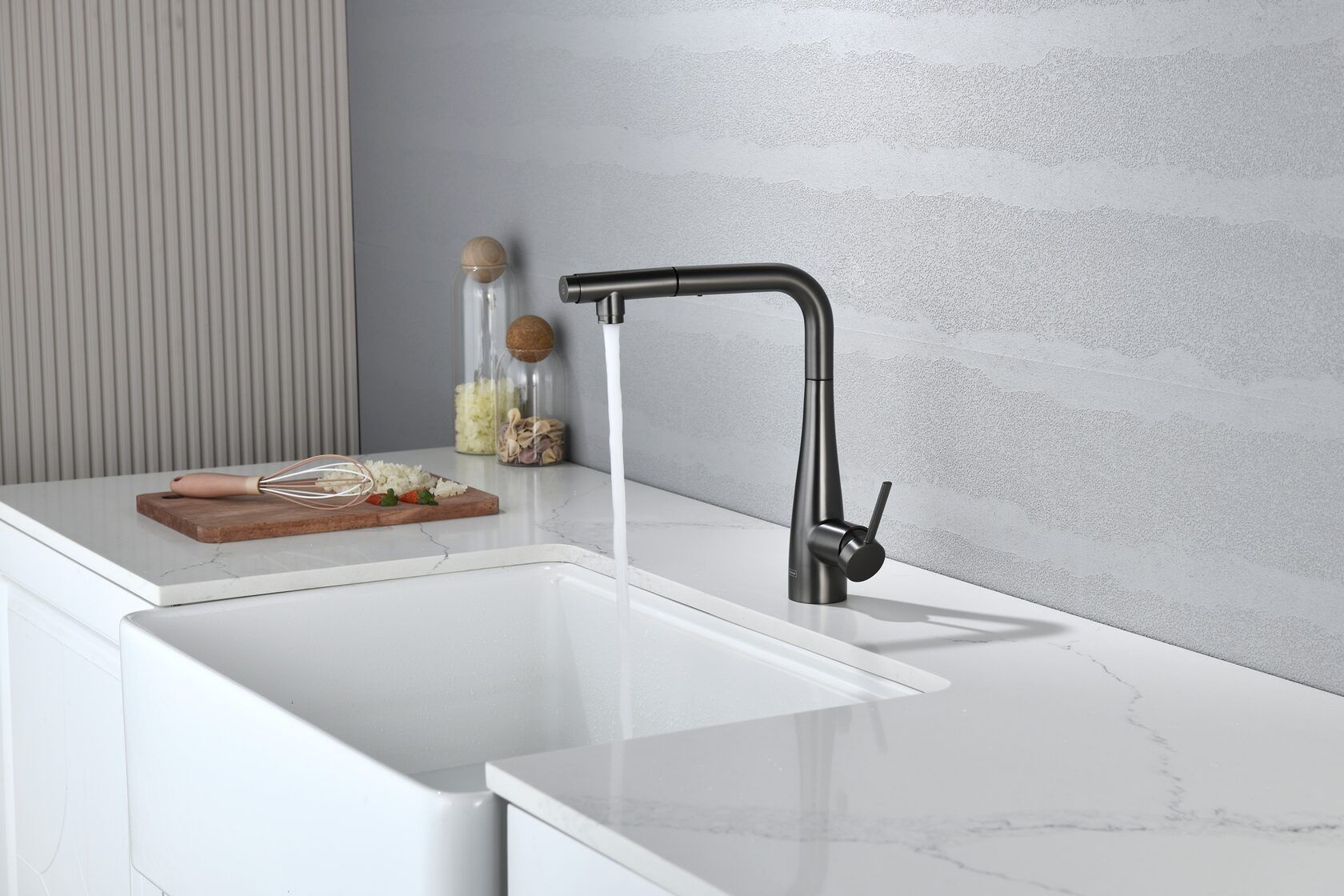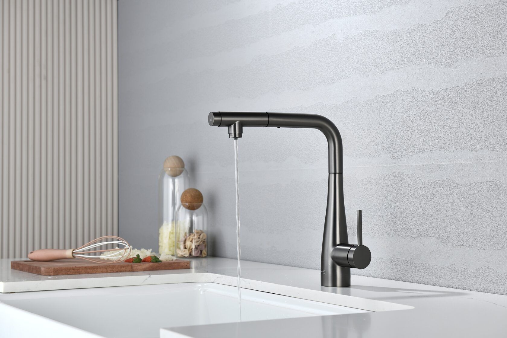 Смеситель для кухни AQUAme Cucina AQM9902GM с выдвижным изливом графит матовый