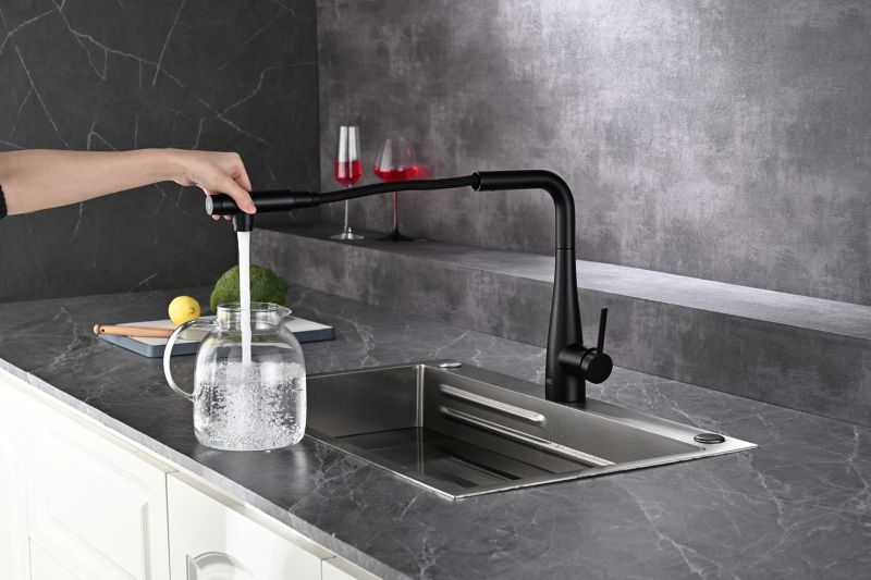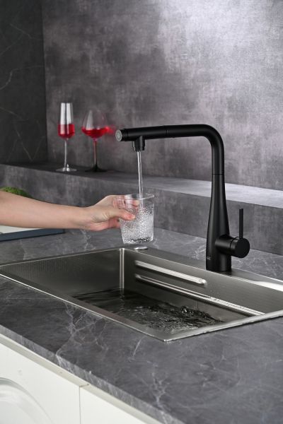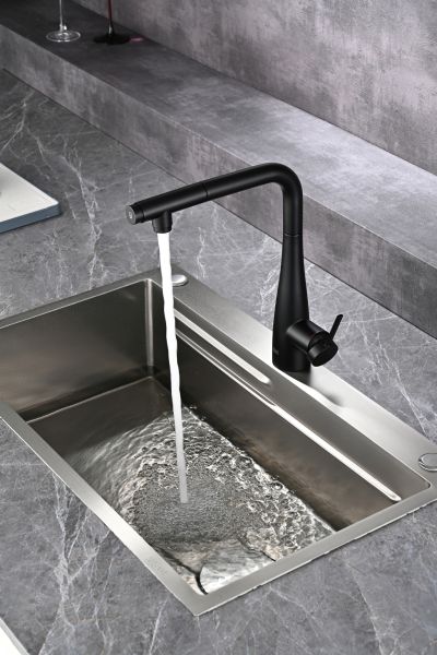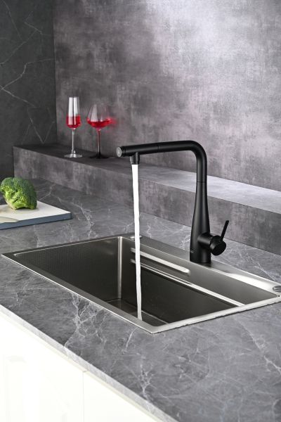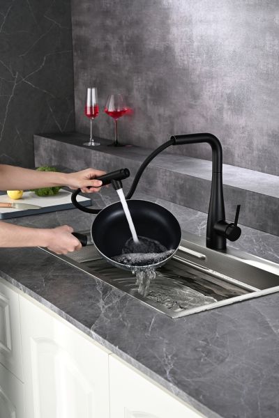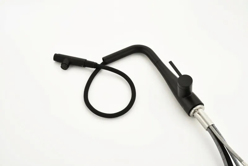 Смеситель для кухни AQUAme Cucina AQM9902MB с выдвижным изливом чёрный матовый