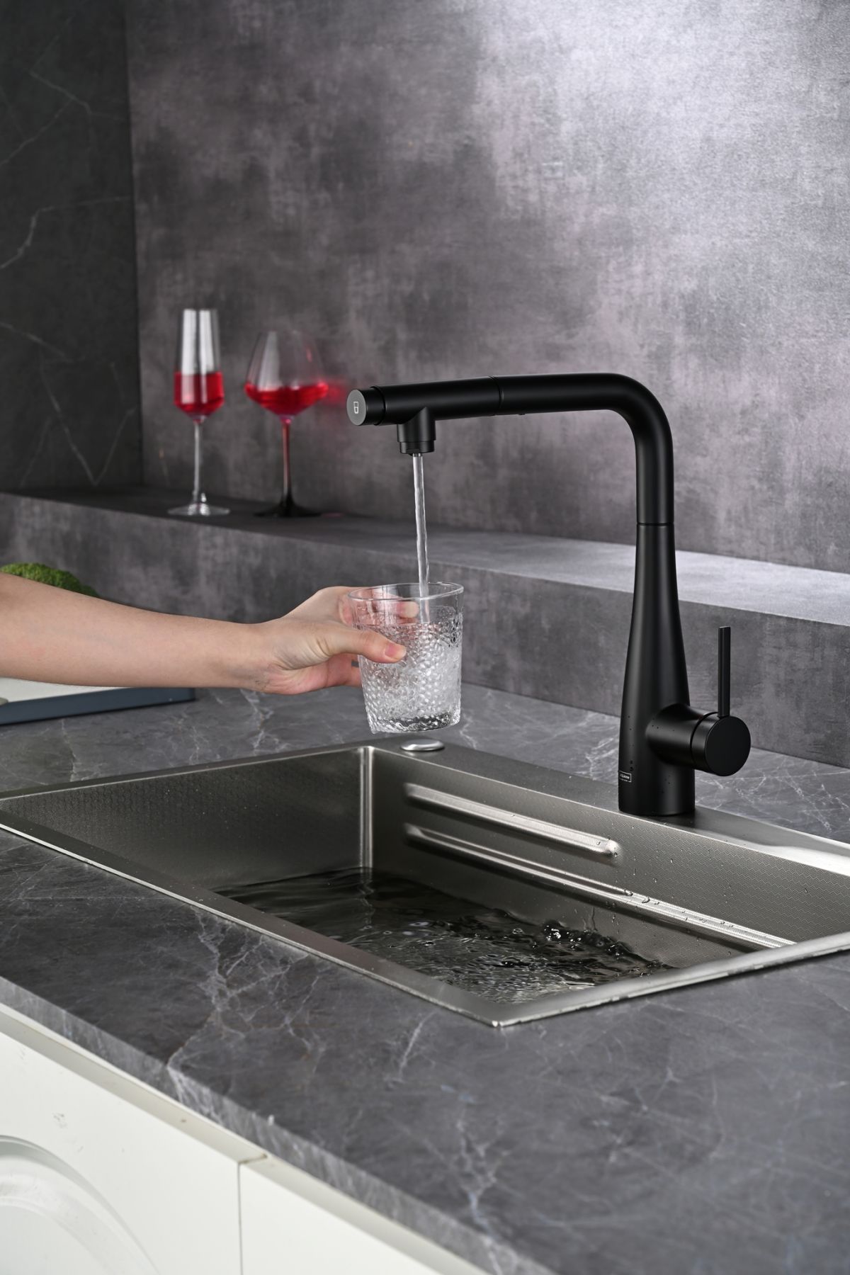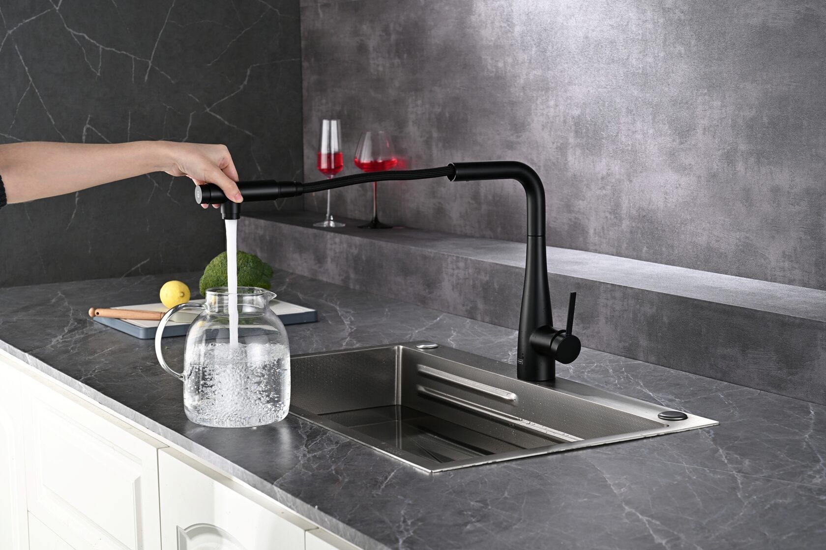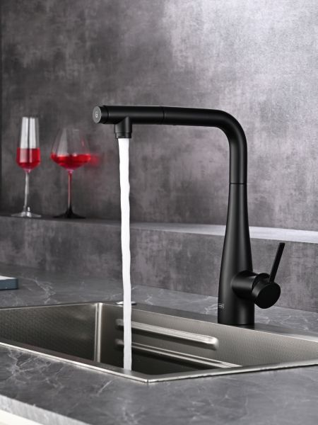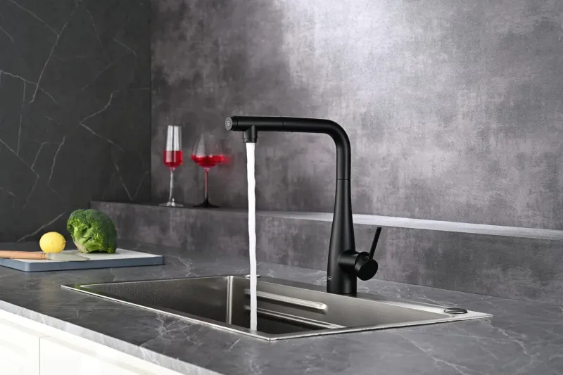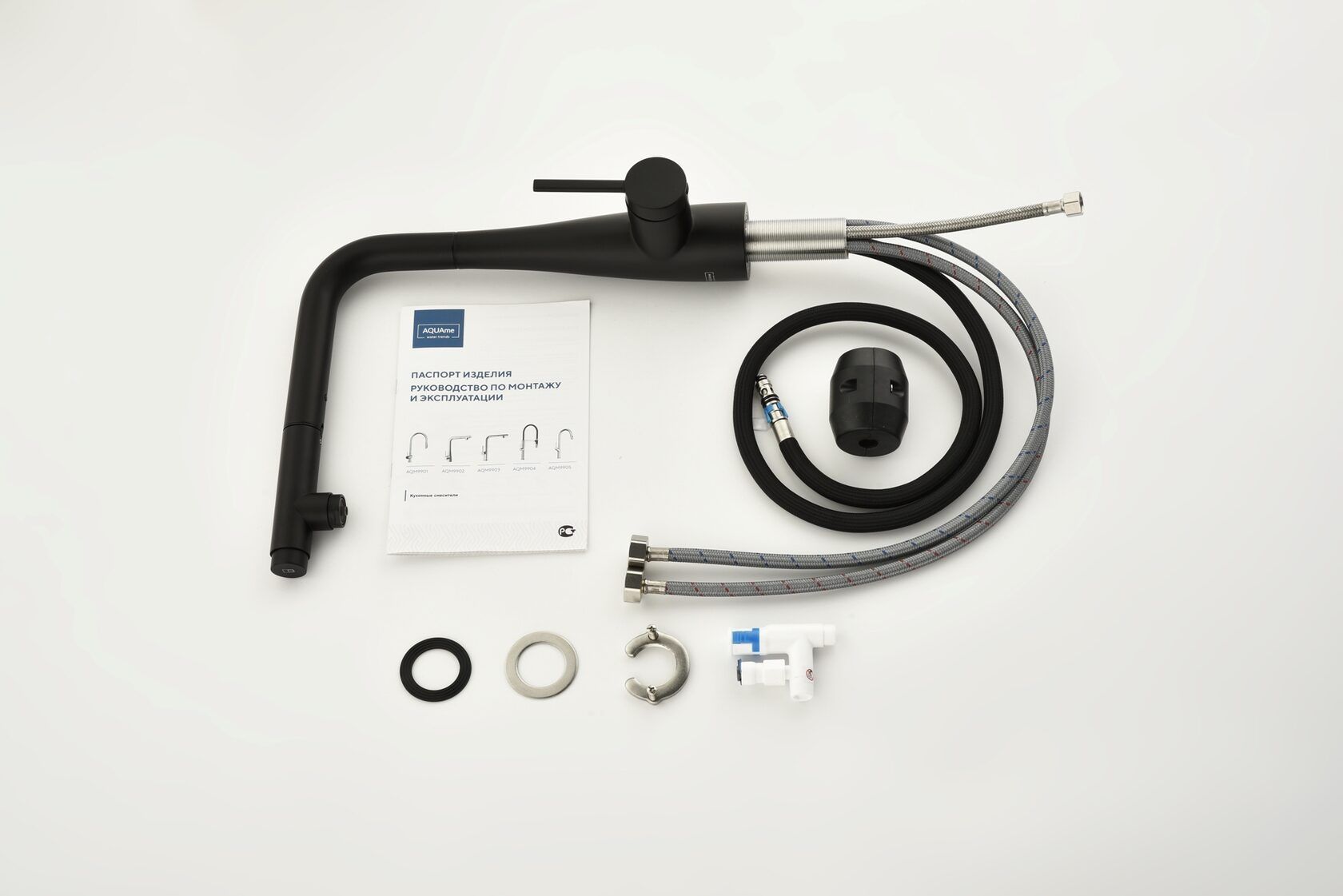 Смеситель для кухни AQUAme Cucina AQM9902MB с выдвижным изливом чёрный матовый купить