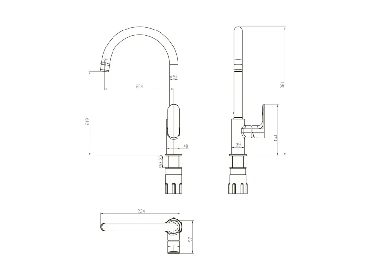 - Высота смесителя:38